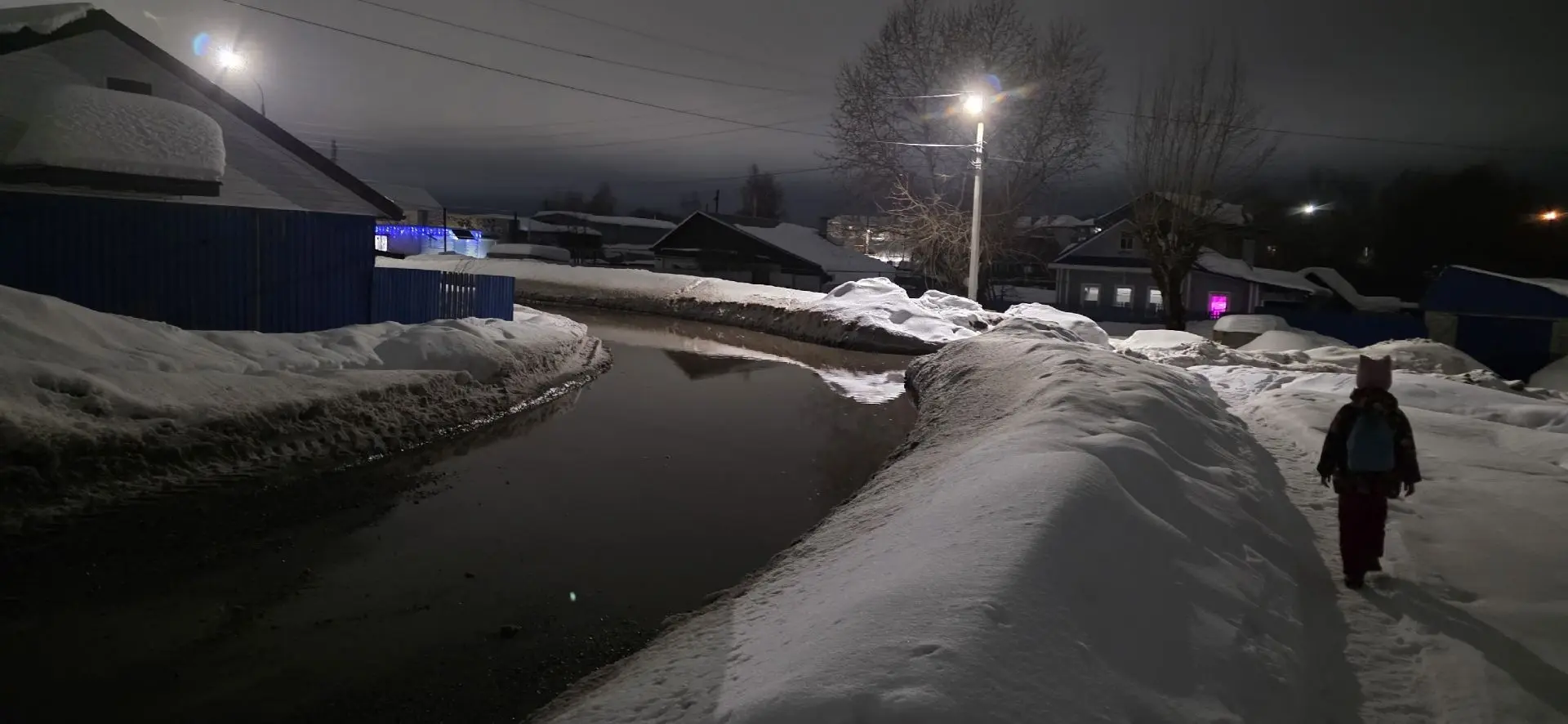 Вот так обстоят дела на улице Новой. Пора уже убрать это безобразие. Единственный тротуар завалили снегом! А он на минутку с человеческий рост. Сегодня я провалилась на всю длину своей ноги! а это 80 см. А под снегом овраг оказался. Может и ушла бы целиком, если бы провалилась и вторая нога. При попытке выбраться в узкой тропе снег проваливался под руками. Чудом получилось выбраться самостоятельно, без помощи. Да и где её взять то? А со стороны дороги не пройти, там паводок!!! УБЕРИТЕ СНЕГ С ДОРОГИ! Завтра людям на работу, детям в школу. Как идти??