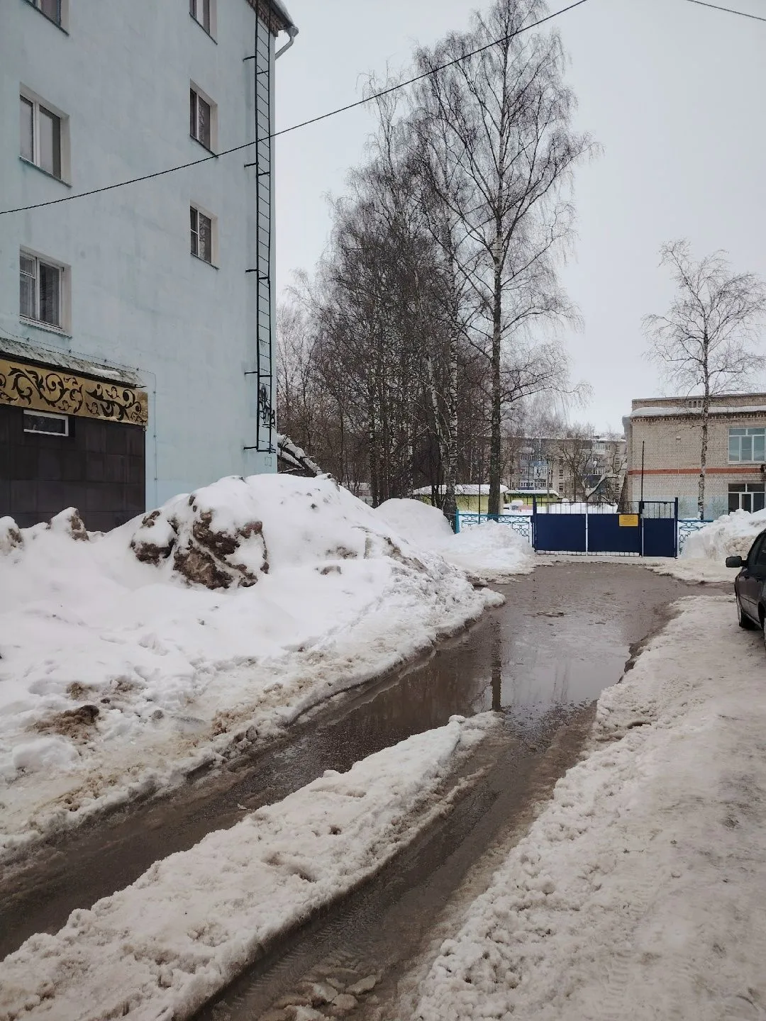 Здравствуйте! Просим помочь с проблемой! Зимой чистили снег, сгребли все в большие сугробы, с приходом весны все начало таять, с детьми в садик пройти невозможно, пока идёшь в сад промокнешь насквозь!