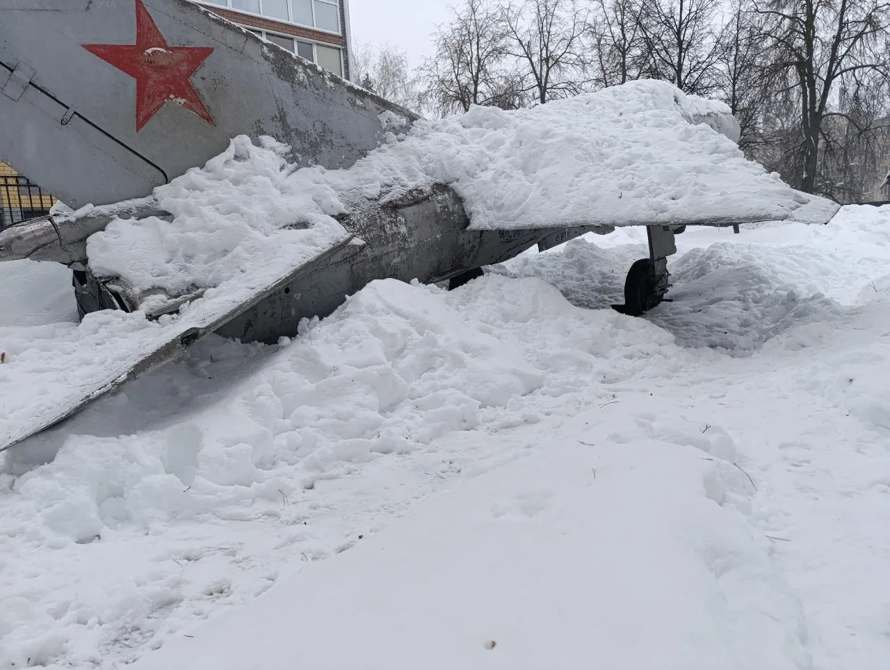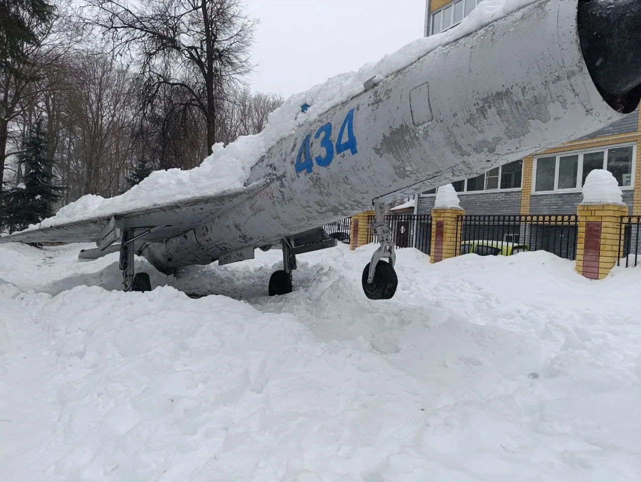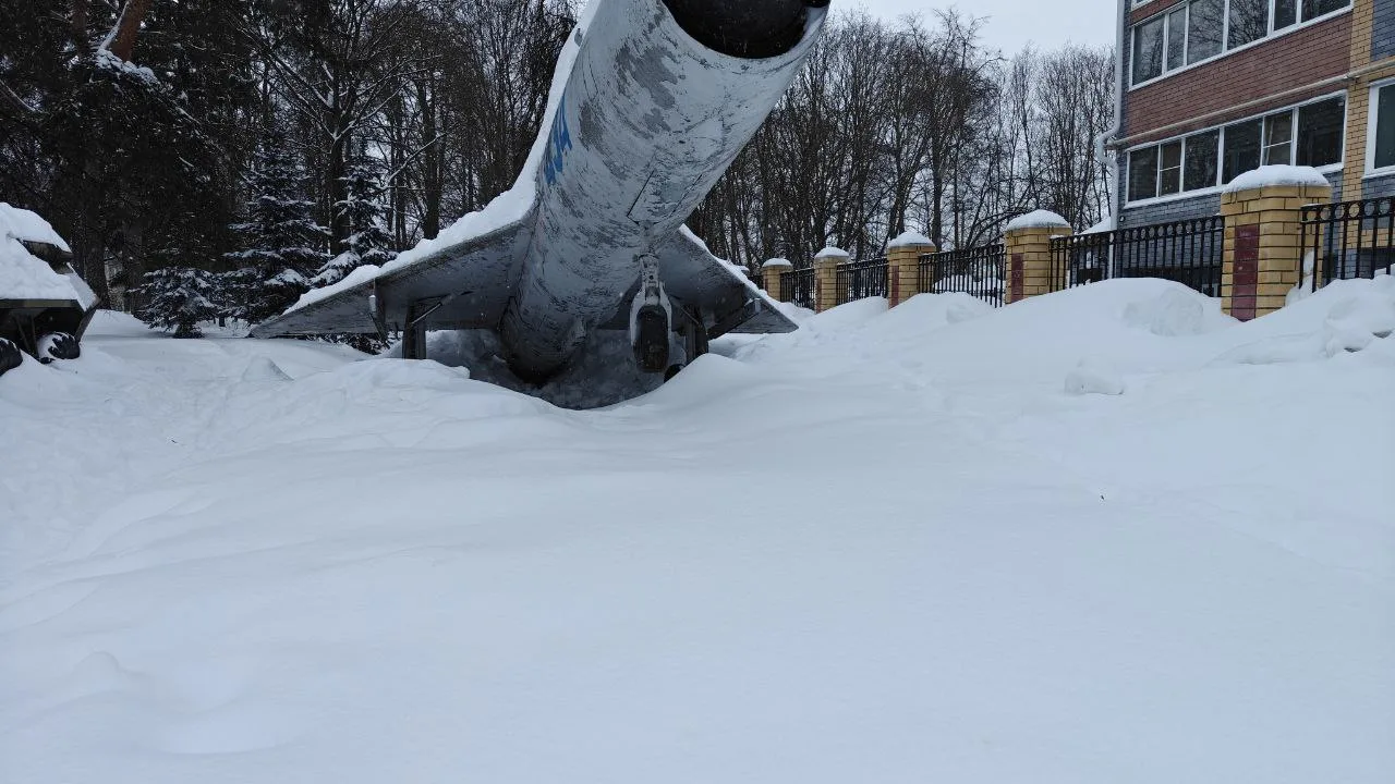 У самолёта в парке Победы поднялся нос из-за снега на хвосте. Будет таять снег, и нос рухнет вниз. Может кого-нибудь из детей придавить. Нужно принудительно его опустить, счистив снег.»