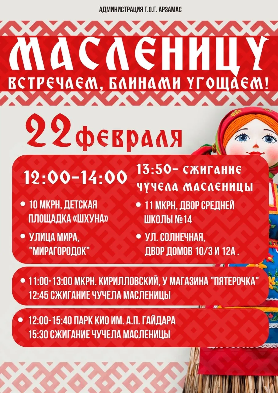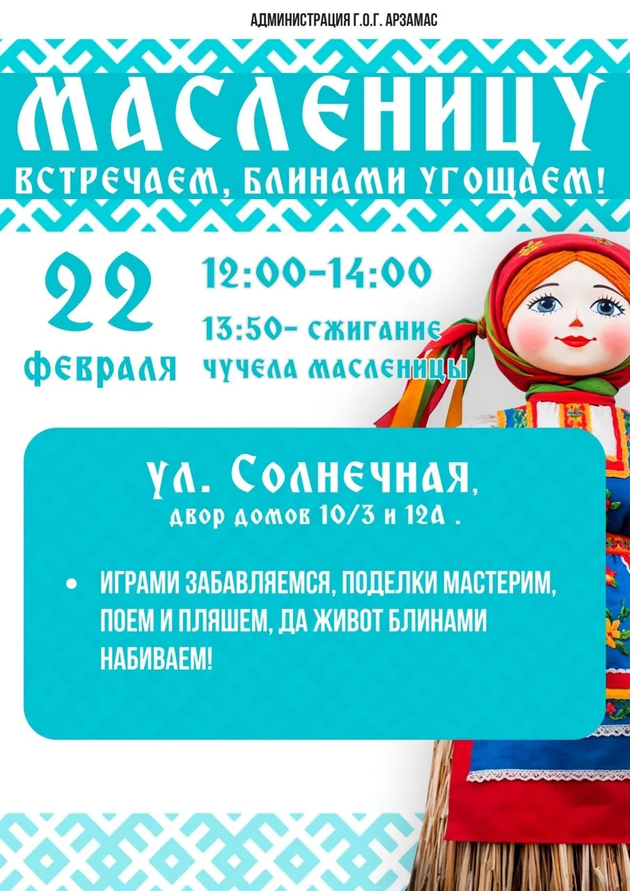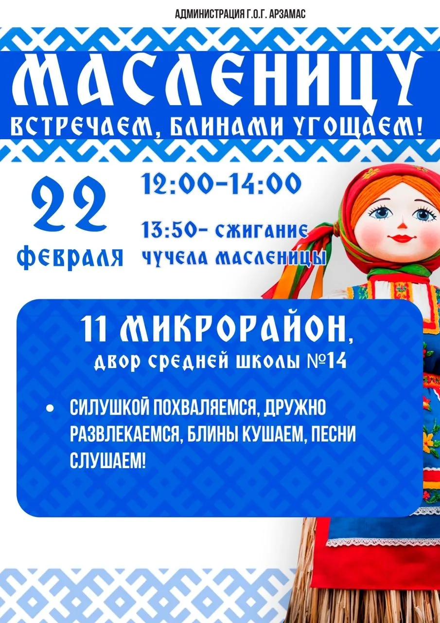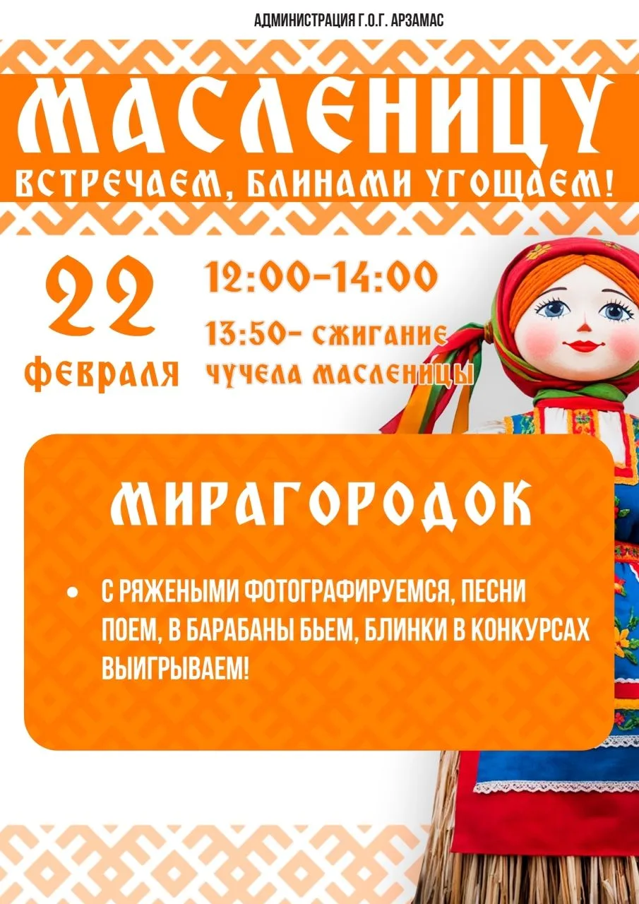 🥞 Масленичные гуляния в Арзамасе состоятся 22 февраля