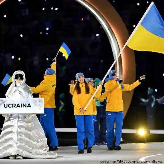 Россиянка Анастасия Кучерова во время церемонии открытия зимних Олимпийских игр несла табличку сборной Украины.