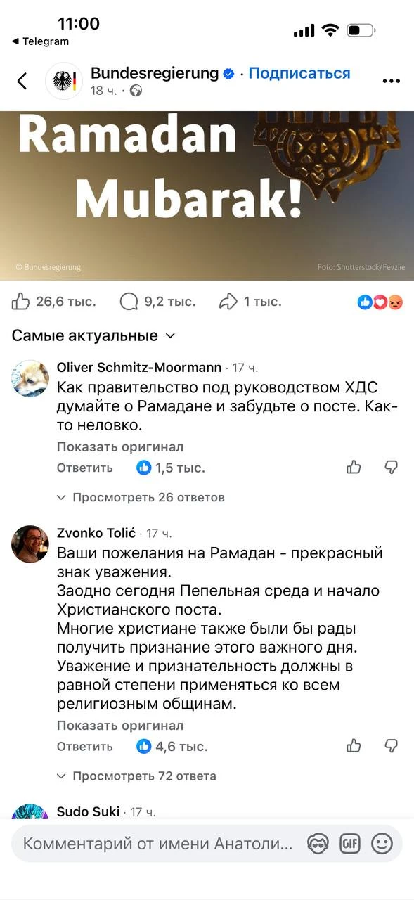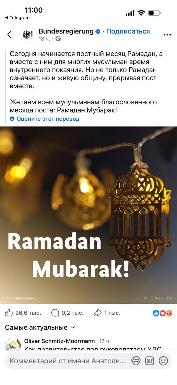 Федеральное Правительство Германии поздравило народ с Рамаданом. И это прекрасно.