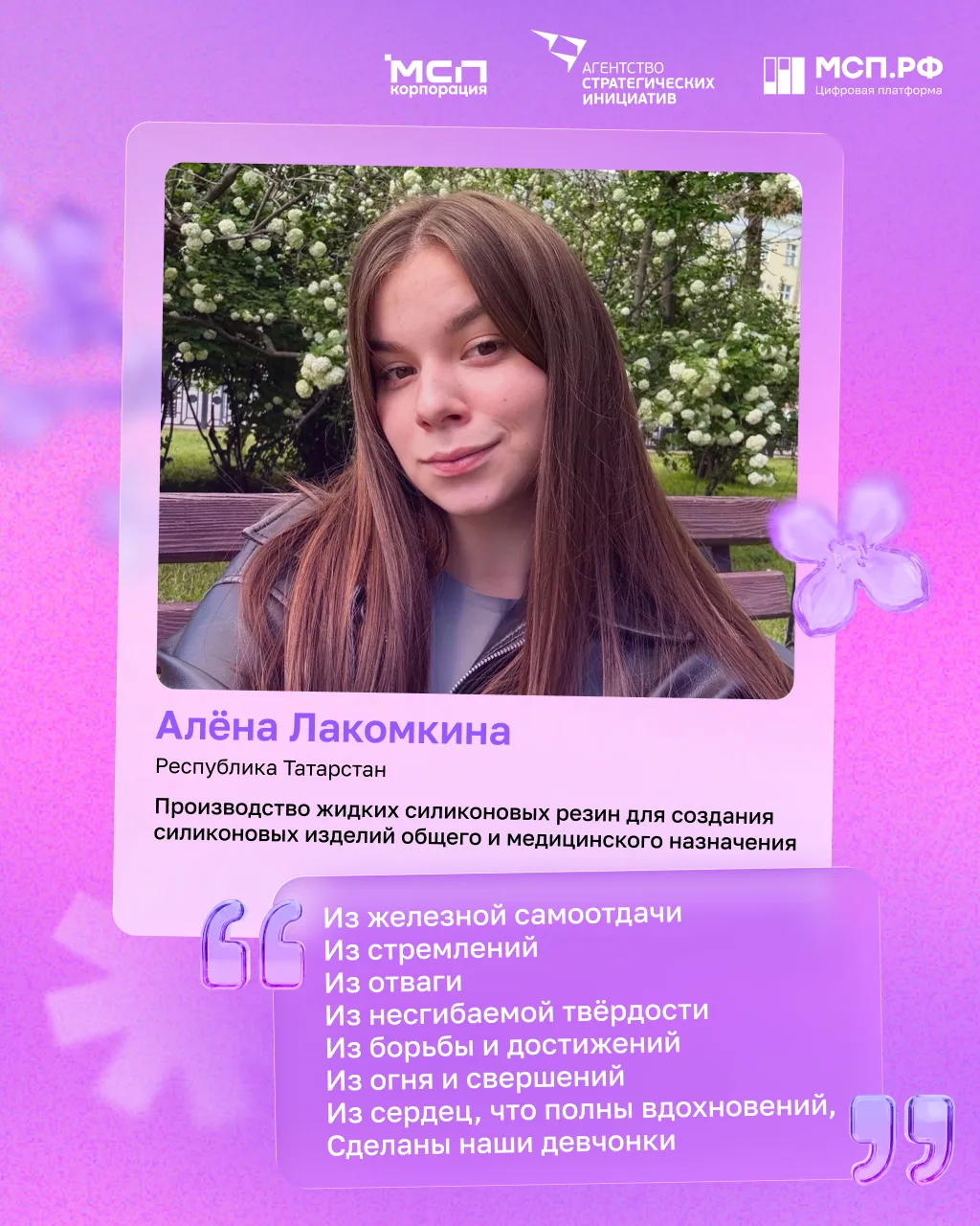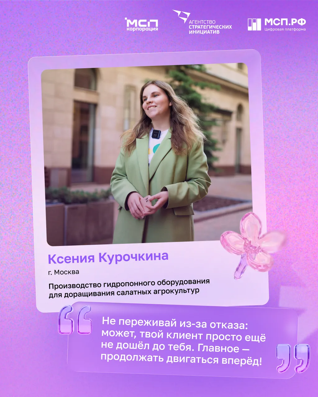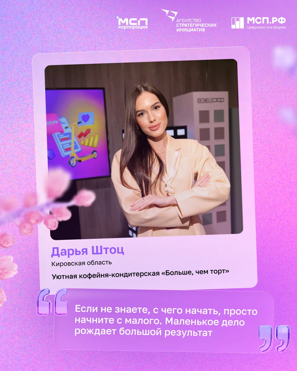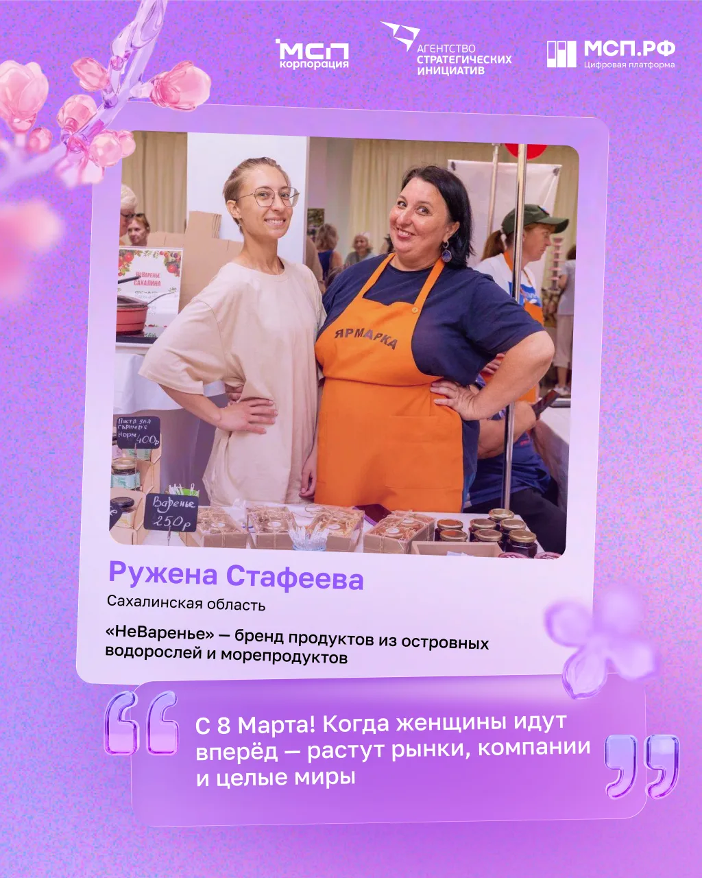 Сегодня победительницы конкурса «Создай НАШЕ» присоединяются к поздравлениям женщин-предпринимателей от Корпорации МСП, АСИ и Цифровой платформы МСП.РФ! 💬 И делятся классными мотивирующими мыслями о бизнесе! ⬆️ Листайте открытки!
