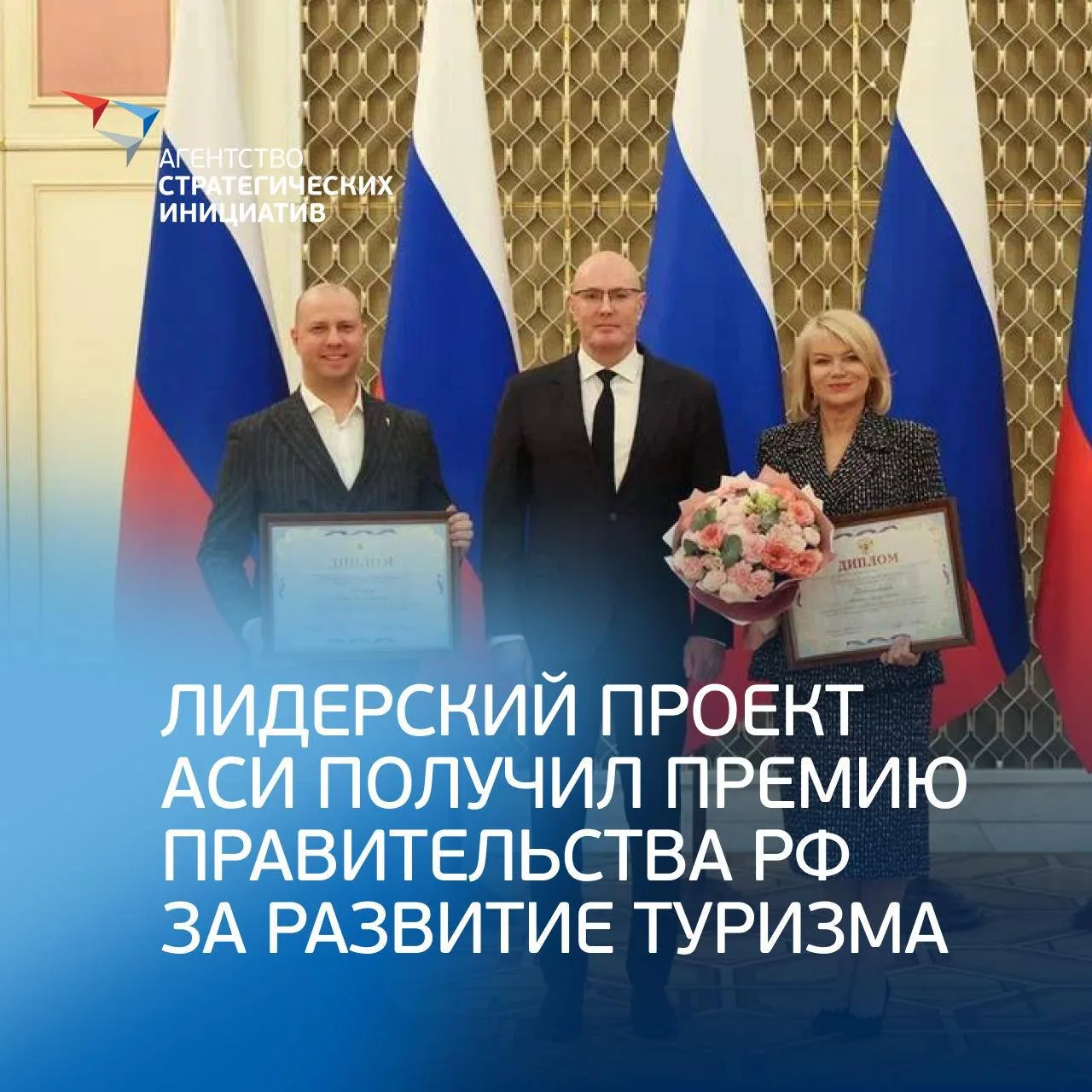 Зампред Правительства России Дмитрий Чернышенко вручил награду лидеру проекта АСИ «Промышленный туризм» Сергею Рыжову и автору методологии Наталье Кисельниковой. Лауреатами премии стали 10 проектов из 130 заявленных.