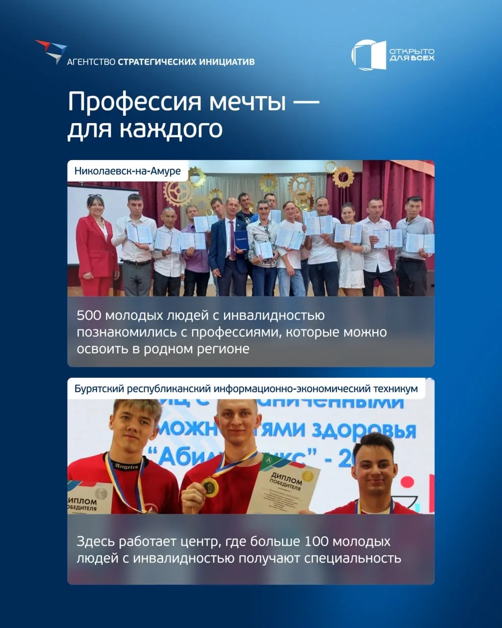 🗓️В Москве 2–3 декабря пройдет второй ежегодный всероссийский инклюзивный форум «Открыто для всех». Решение было принято на заседании оргкомитета по подготовке и проведению форума под председательством вице-премьера Татьяны Голиковой. Даты приурочены к Международному дню инвалидов. Организаторы – Агентство стратегических инициатив и фонд «Росконгресс».