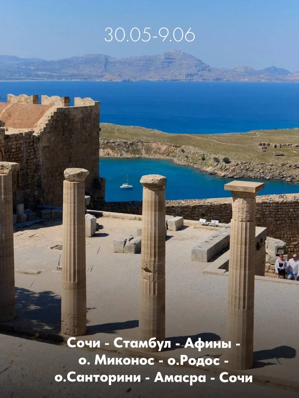Сочи — Стамбул — о. Родос — о. Миконос — о. Санторини — Афины — Амасра — Сочи