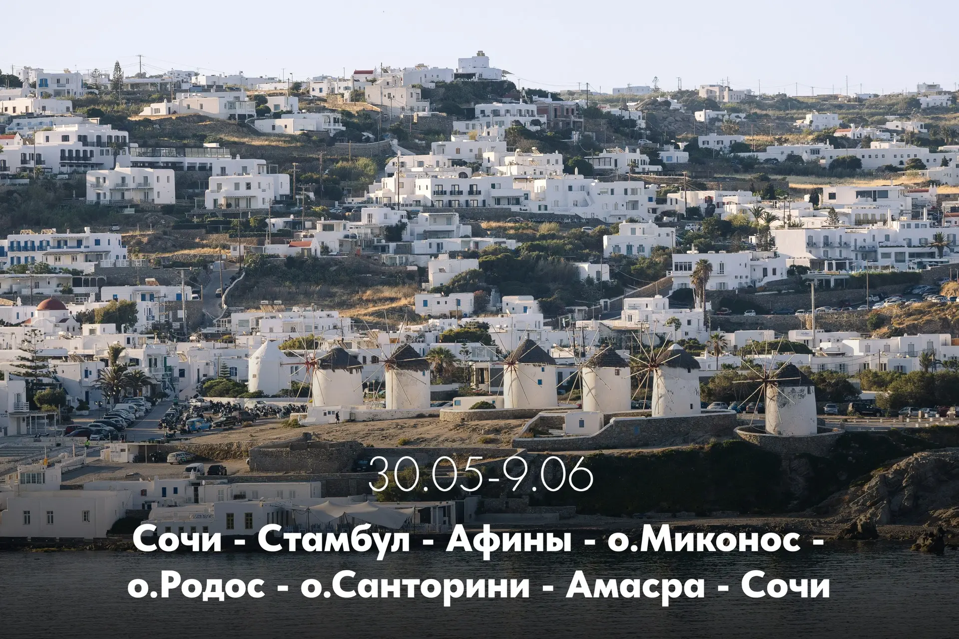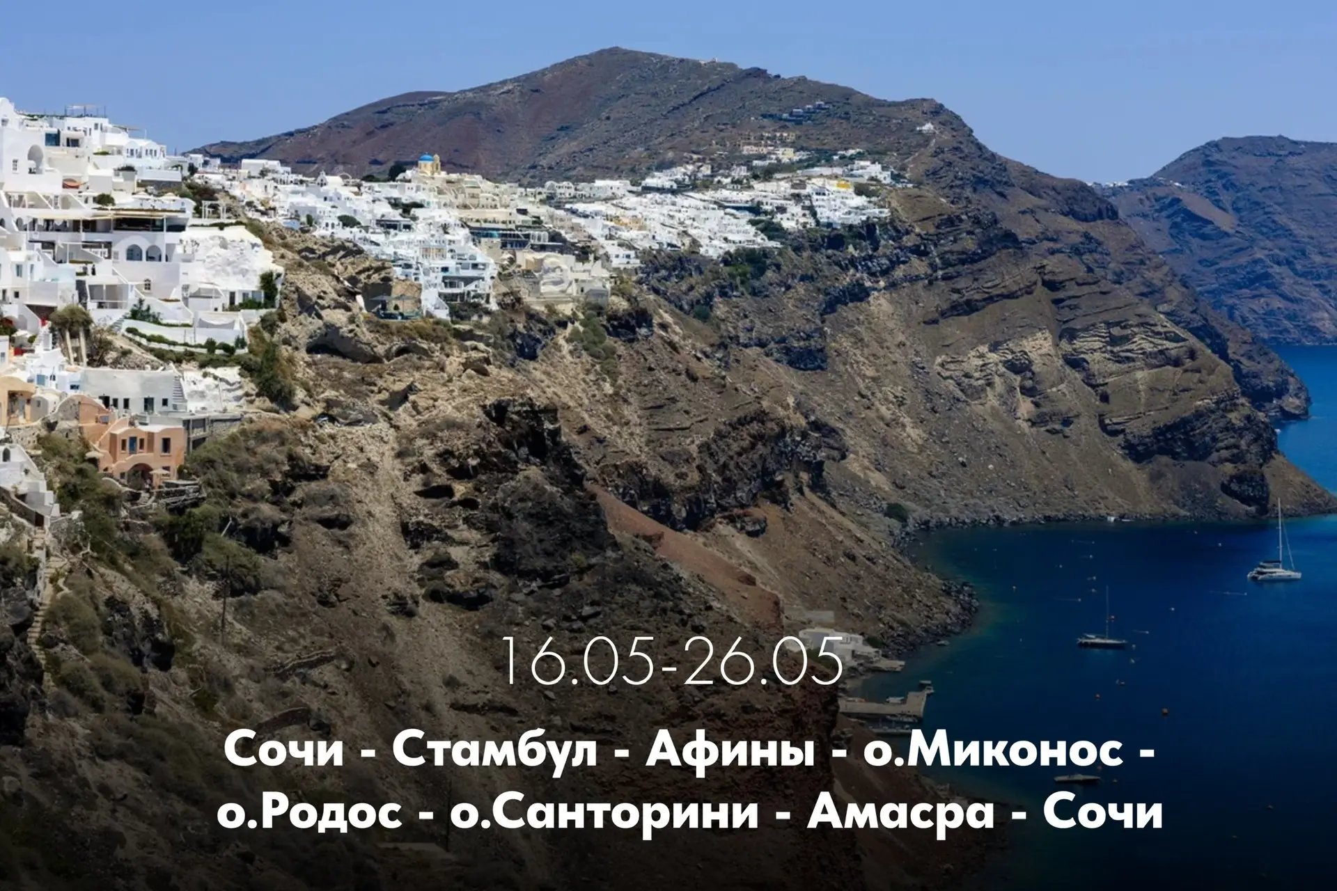 Сочи — Стамбул — Афины — о. Миконос — о. Родос — о. Санторини — Амасра — Сочи