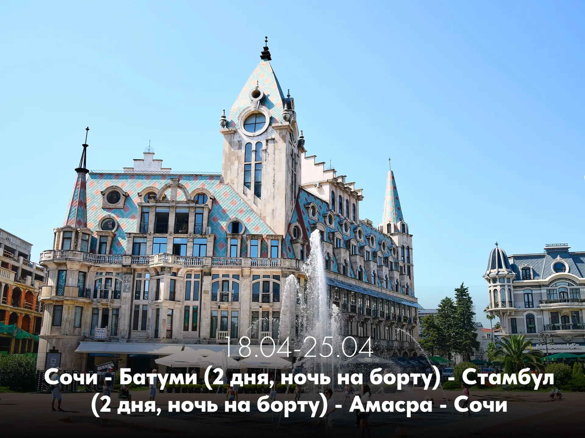 Весенний круиз по Чёрному морю и побережью Турции. Два дня в солнечном Стамбуле, прогулки по уютной Амасре и восточный колорит прибрежных городов.