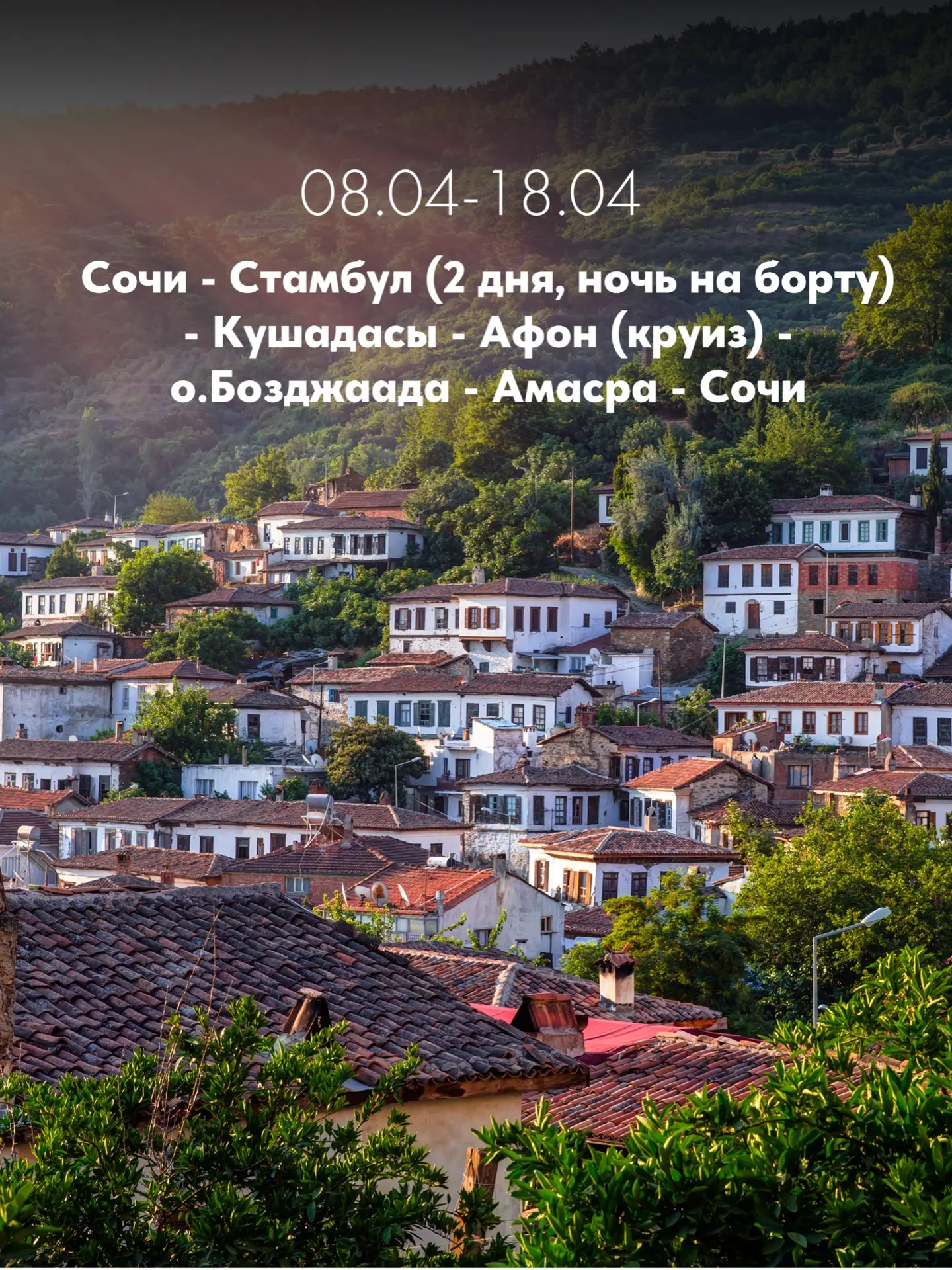 Сочи — Стамбул — Афон (круиз вдоль побережья) — о. Бозджаада — Амасра — Сочи