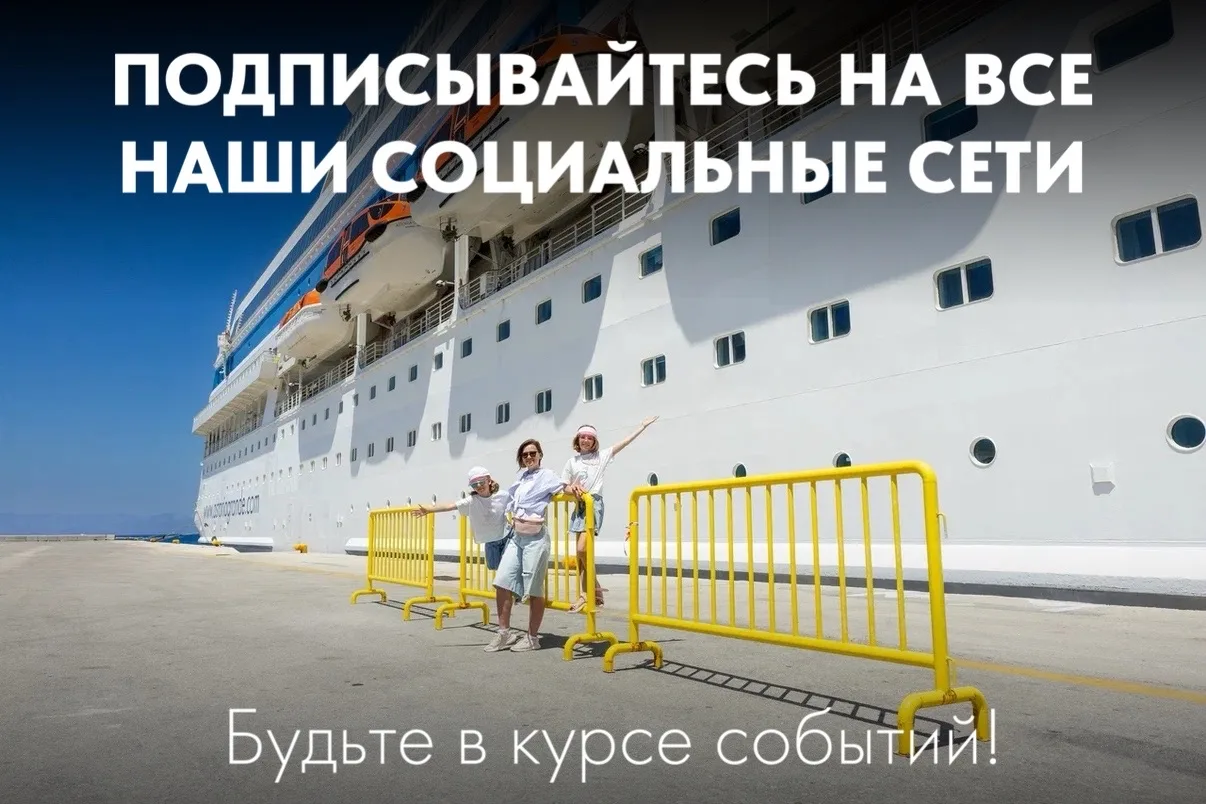 Подписывайтесь на удобную для вас площадку, чтобы быть в курсе новых маршрутов, экскурсий, специальных предложений и стартов круизов.