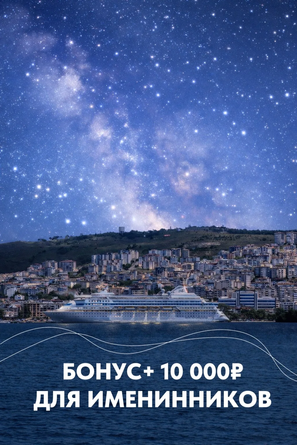 Праздник в море — это особый формат: атмосфера лайнера, ужин, музыка, внимание экипажа и поздравления в пространстве, где привычные эмоции ощущаются иначе.
