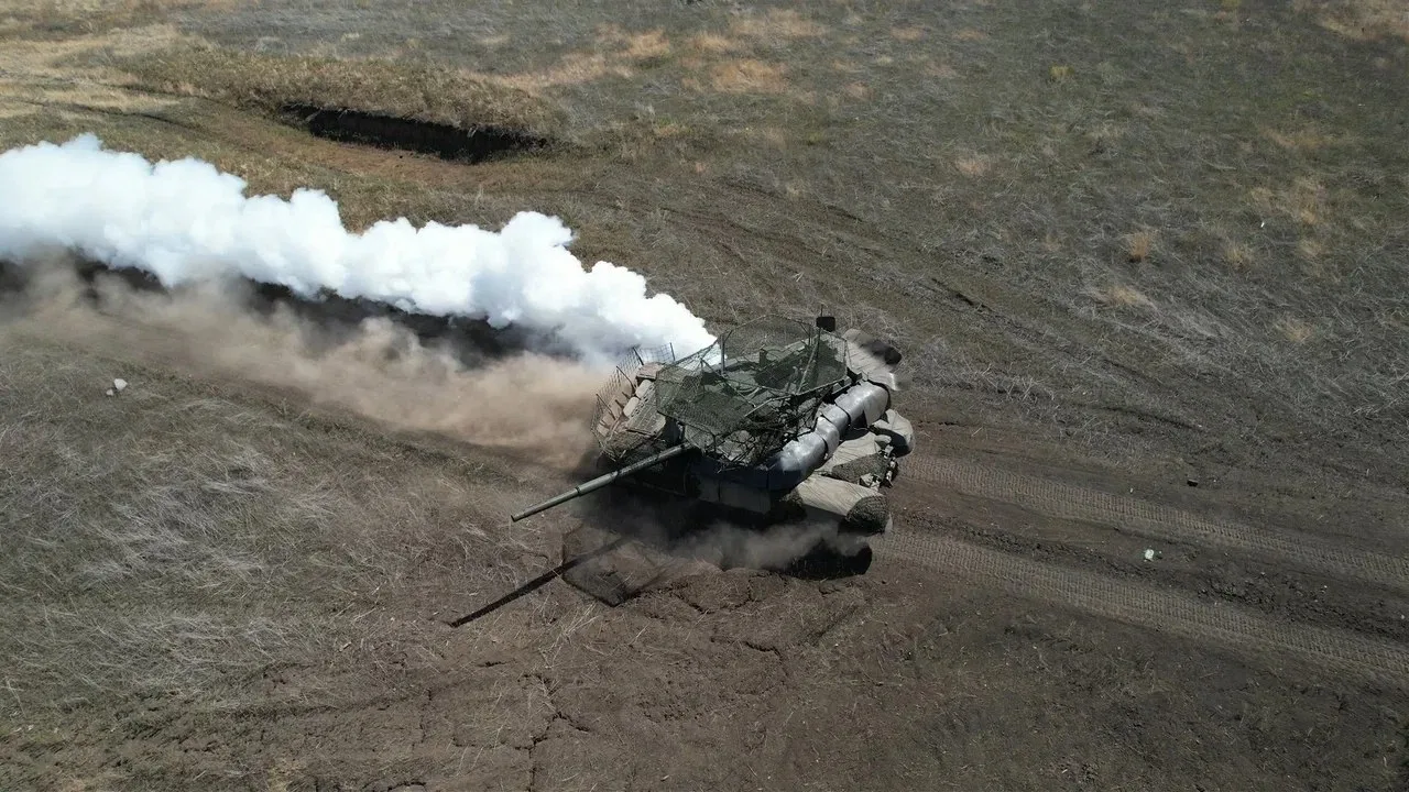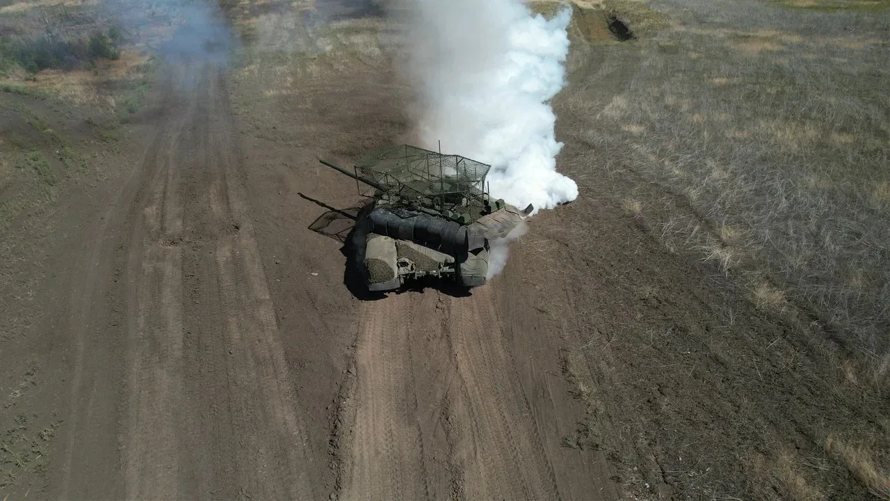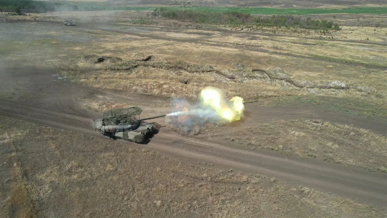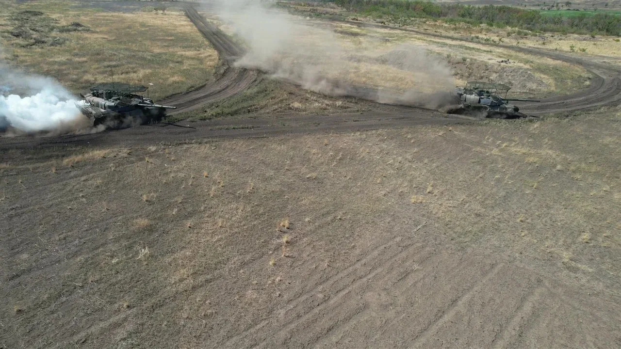 Танки Т90м на полигоне группировки войск Центр на одном из полигонов ведут огонь по одному и парой, отрабатывают движение с прикрытием дымом и просто красиво смотрятся)