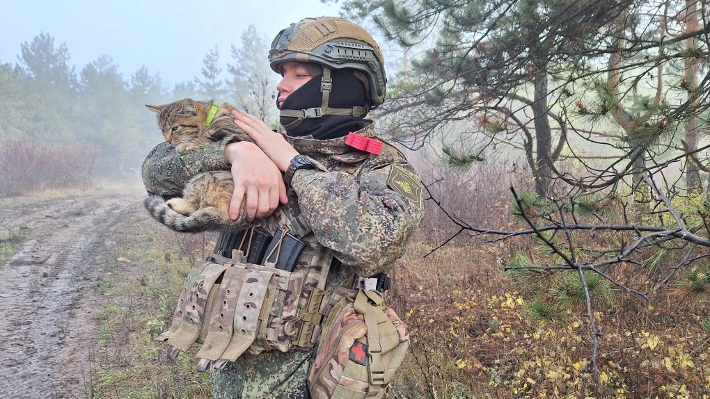 Тактический питомец реактивщиков из группировки войск Центр обходит своим анти-мышиным дозором вверенные блиндажи и установки Град.
