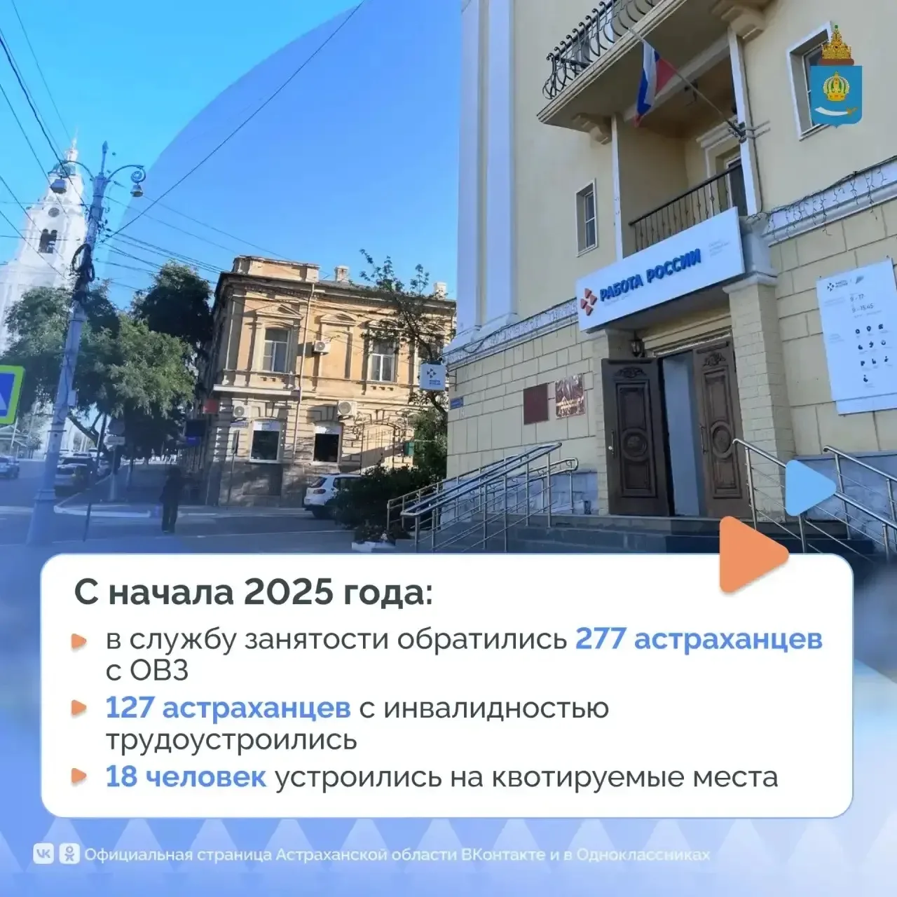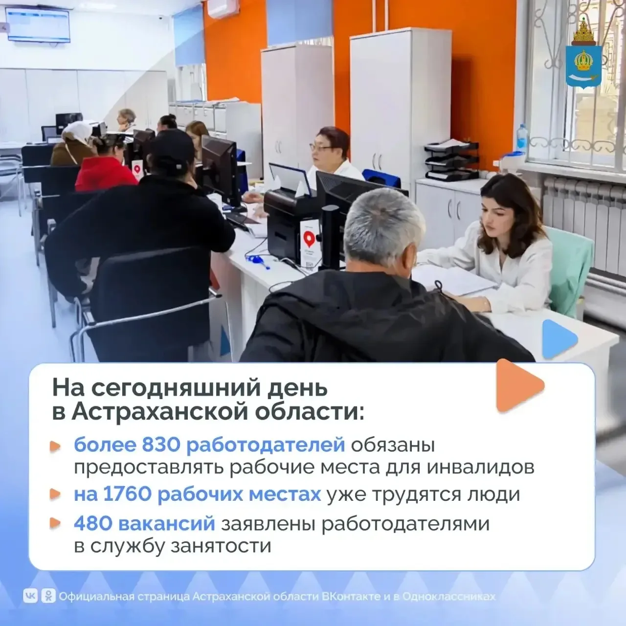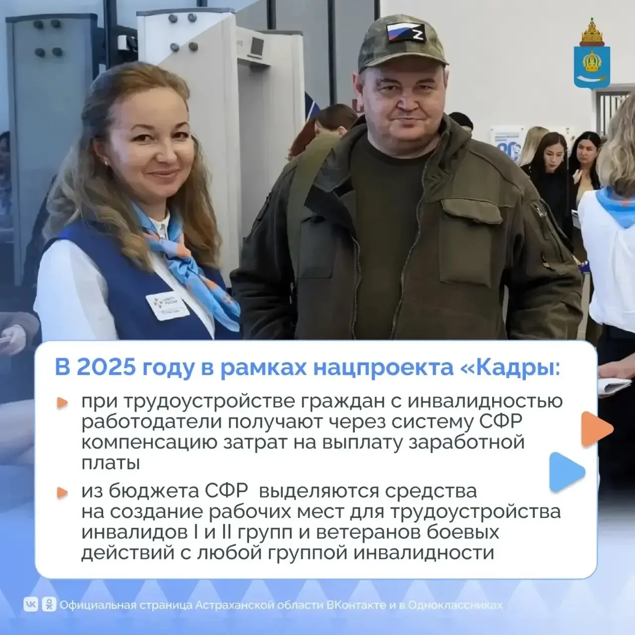 В этом году служба занятости Астраханской области участвует в комплексной модернизации в рамках нацпроекта «Кадры». Люди с инвалидностью являются одной из приоритетных клиентских групп. Специалисты Кадровых центров помогают людям с инвалидностью с социальной адаптацией, оказывают психологическую поддержку и сопровождение при трудоустройстве.