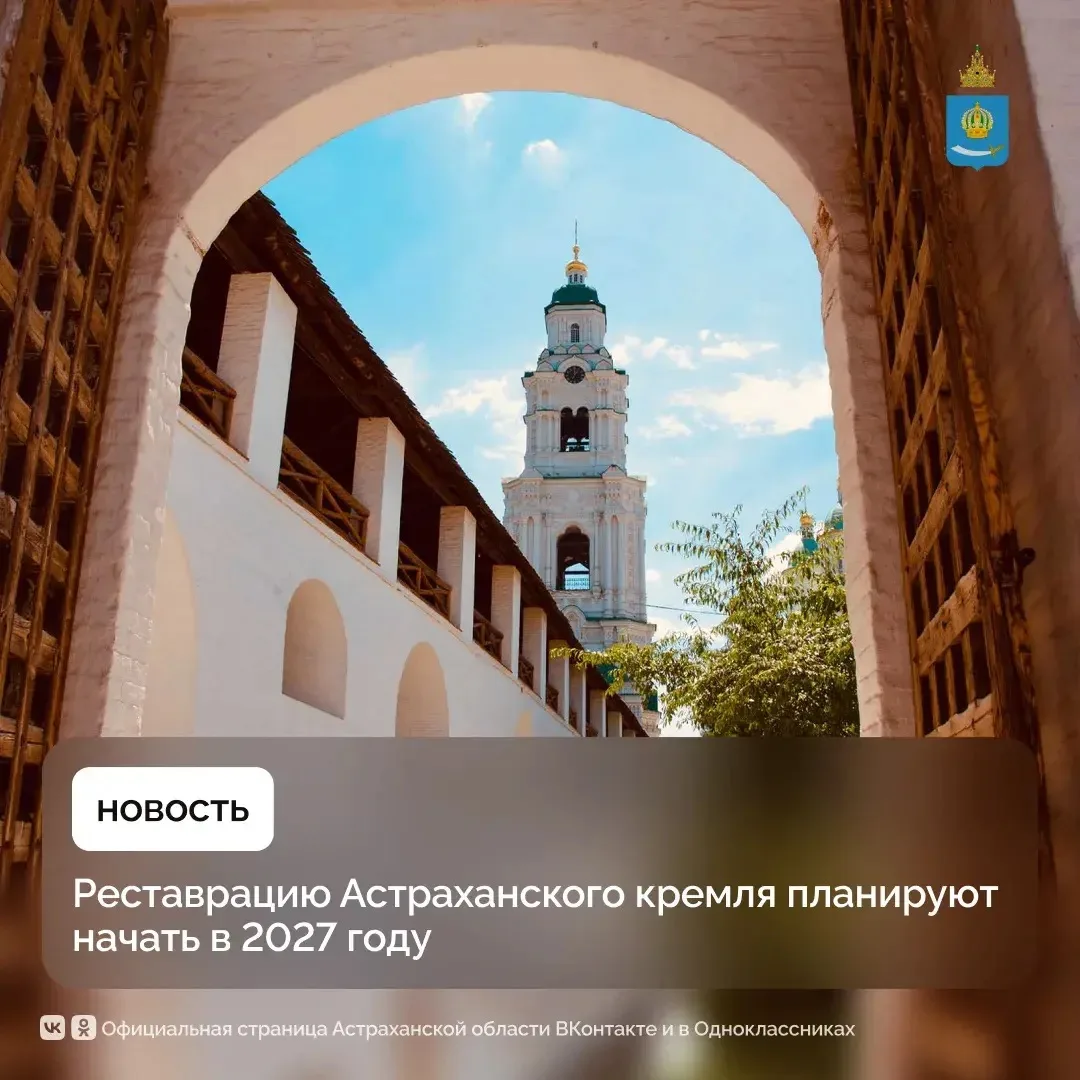 На территории Астраханского Кремля планируют отреставрировать семь объектов: Пречистенскую колокольню, Никольскую надвратную церковь и пять башен — Красные ворота, Житную, Крымскую, Архиерейскую и Артиллерийскую.