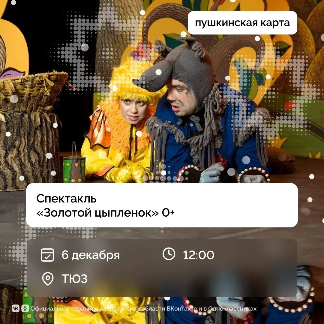 Решили вам помочь в планировании выходных, забирайте подборку! Спектакли, мастер-классы, музыкальные выступления и выставки ждут не только астраханцев, но и всех гостей региона.