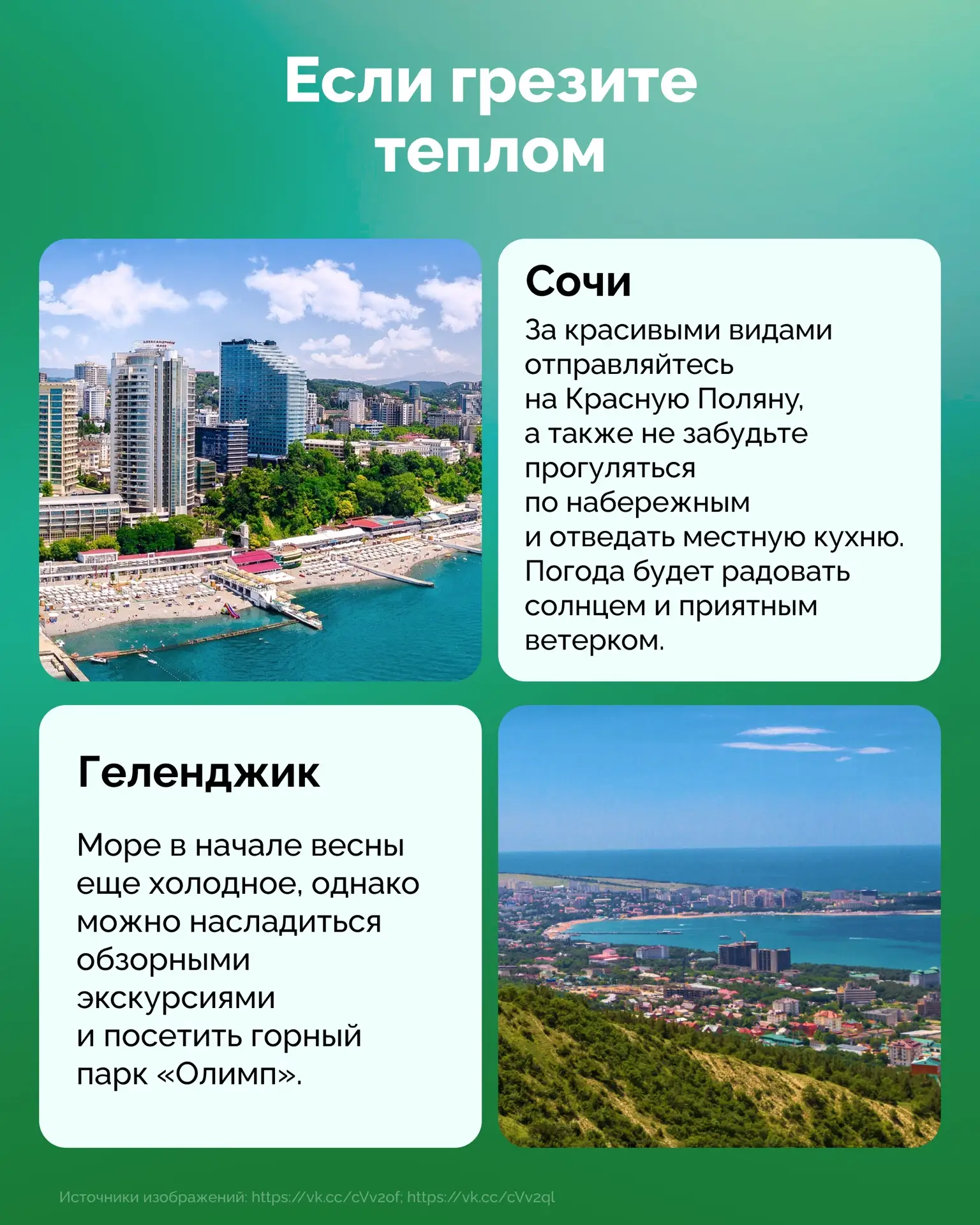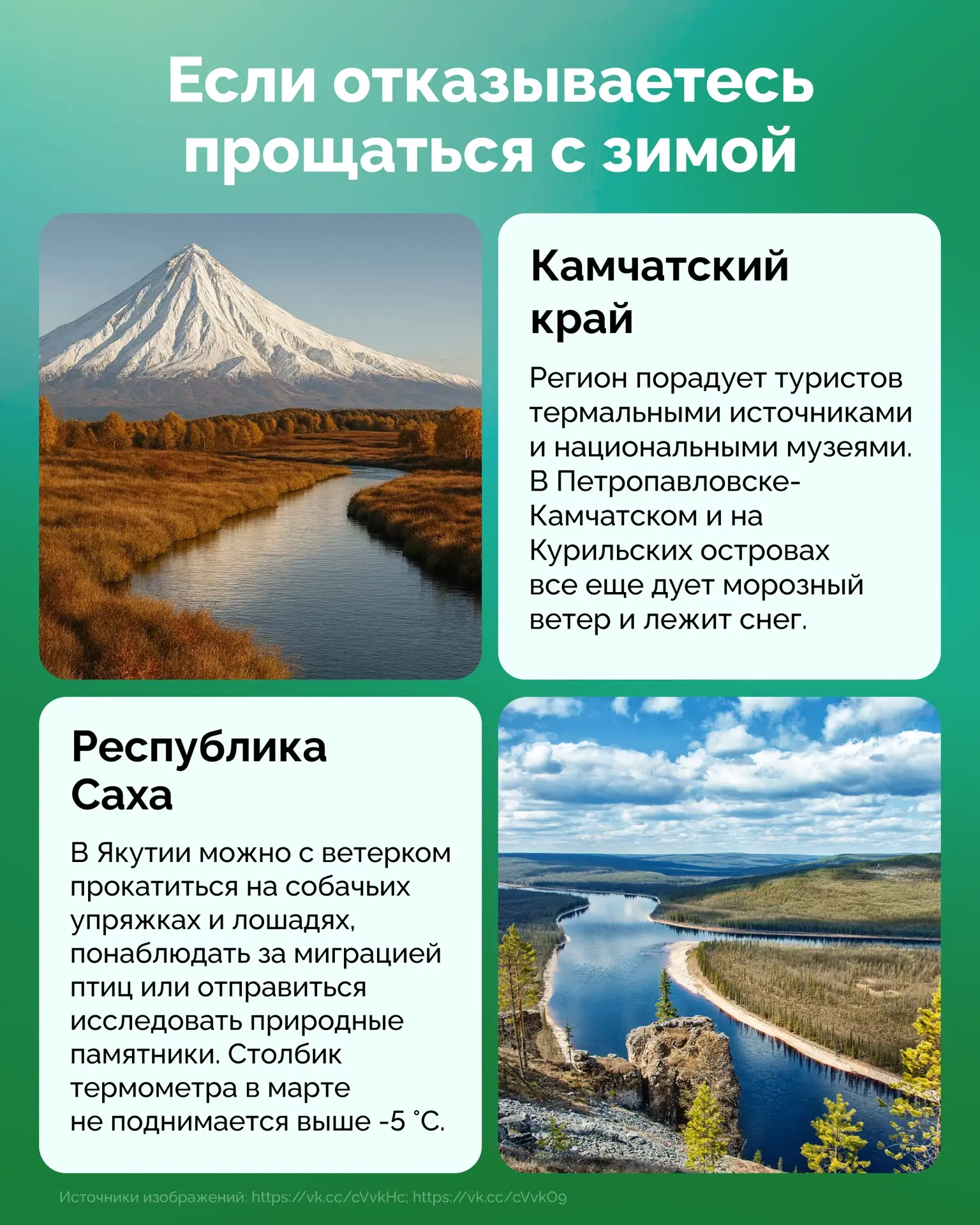 В карточках — подборка интересных мест в России, где можно отдохнуть душой и телом.