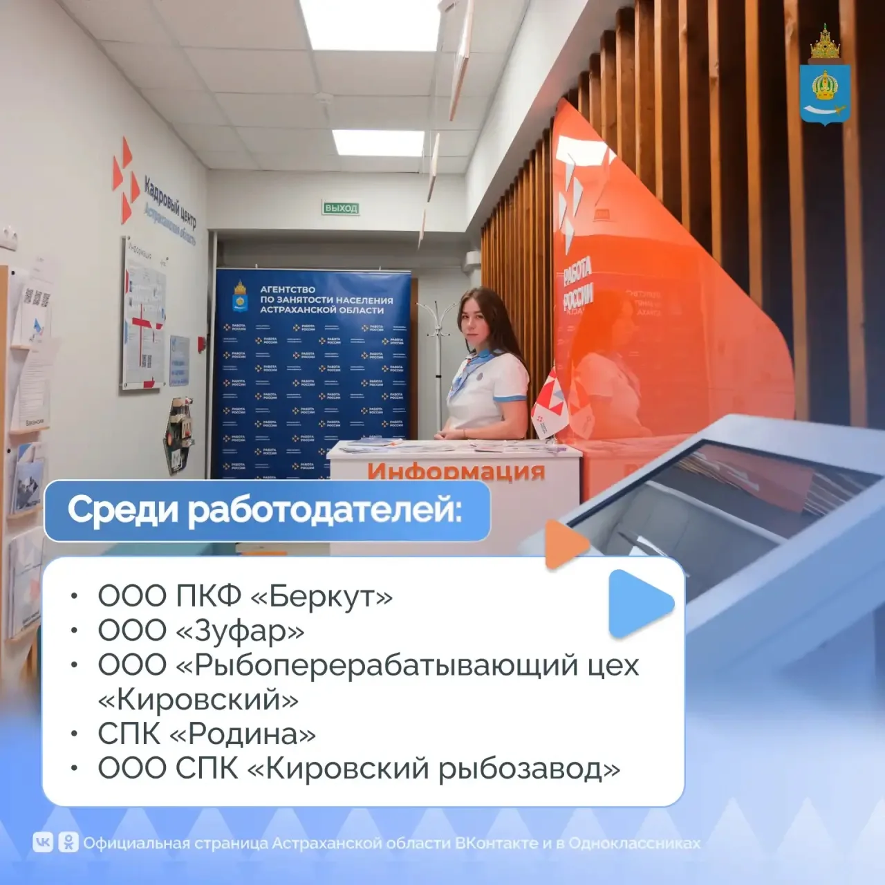 17 апреля с 10.00 во всех районах Астраханской области будут работать площадки регионального этапа Всероссийской ярмарки трудоустройства «Работа России. Время возможностей», а самая масштабная - в Астрахани в молодежном центре «Коса» (ул. Анатолия Сергеева, 26).