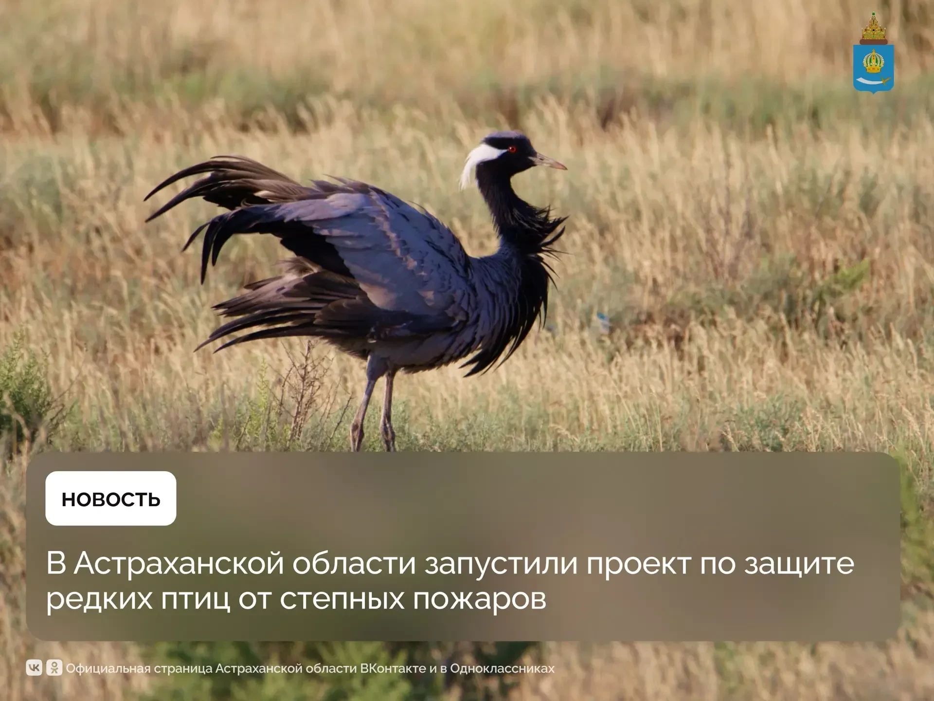 Проект ориентирован на защиту мест гнездования редких видов птиц от степных пожаров в астраханском заказнике «Степной». Его реализует фонд «Природа и люди» при содействии фонда «Мир вокруг тебя».