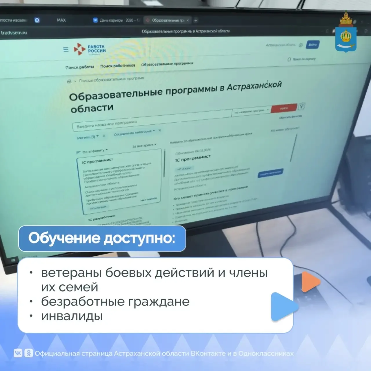 Астраханцы могут пройти обучение в рамках нацпроекта «Кадры».