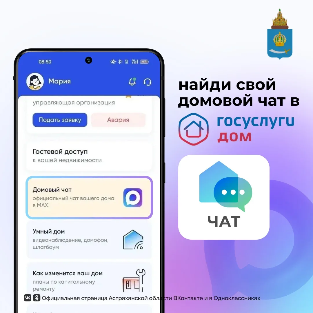 В мессенджере МАХ для каждого многоквартирного дома cоздан общедомовой чат. Здесь астраханцы будут получать уведомления о работах и авариях, обсуждать вопросы содержания дома, общаться с соседями.