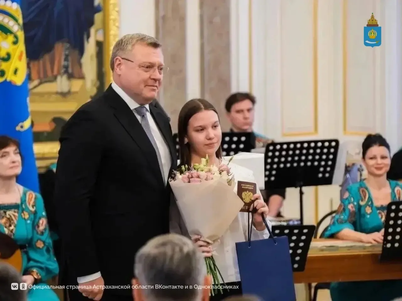Также губернатор вручил первые паспорта гражданина РФ школьникам, достигшим высоких результатов в учебе, творчестве, спорте и общественной деятельности.