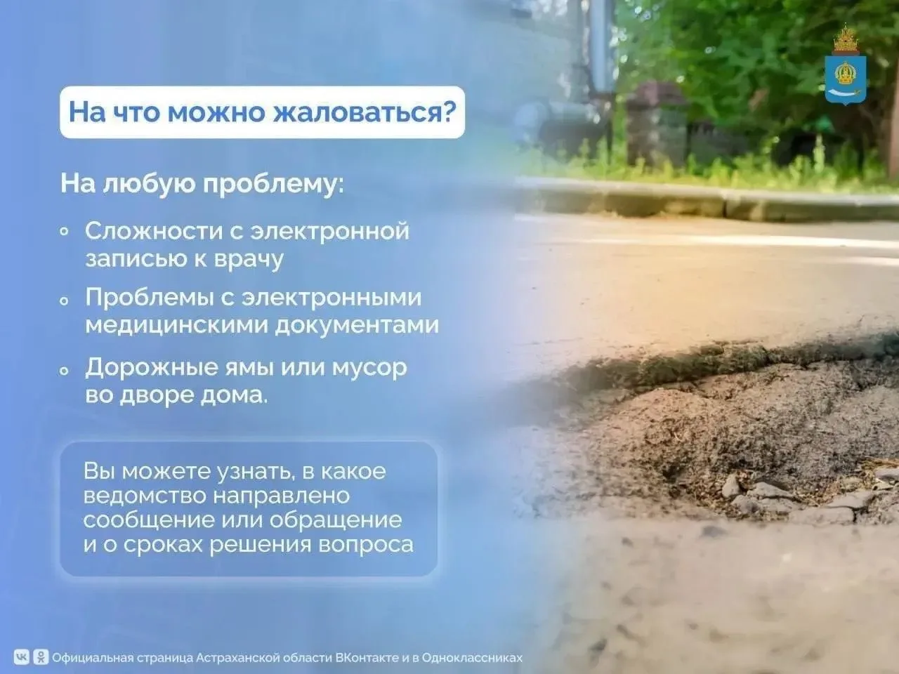 Астраханцы могут сообщить о проблеме или высказать свое мнение через Платформу обратной связи. ПОС позволяет адресно направлять обращения по широкому спектру вопросов.