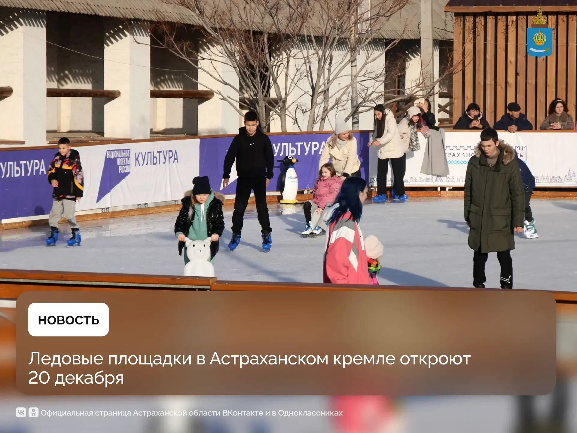 В рамках проекта «Зимняя сказка» в Астраханском кремле вновь начнут работу два ледовых катка. Они откроются 20 декабря и будут принимать посетителей до 28 февраля с 8:00 до 20:00, 31 декабря – с 8:00 до 18:00.