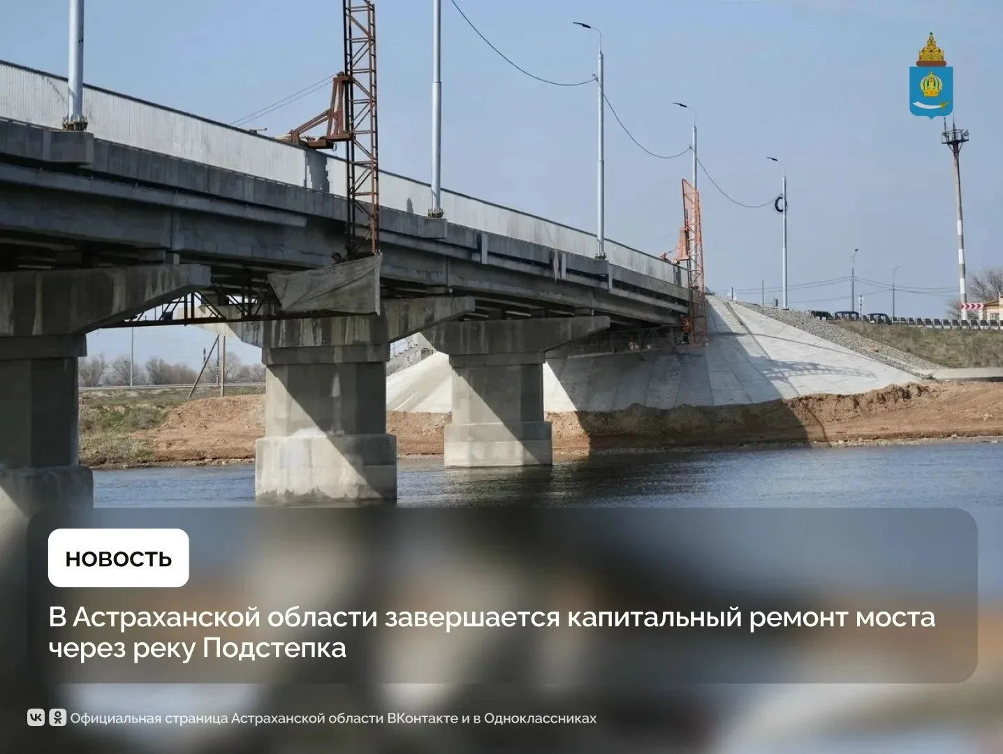В Икрянинском районе подходит к концу капитальный ремонт моста через реку Подстепка. Объект соединяет районный центр с селами Хмелевой, Оранжереи, Федоровка, Ниновка и другими. Работы ведутся по нацпроекту «Инфраструктура для жизни».