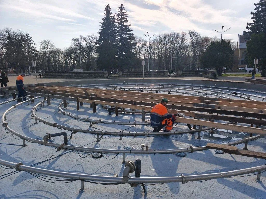 На Александровской площади и у Крепостной горы начали устанавливать светящиеся зимние фонтаны.