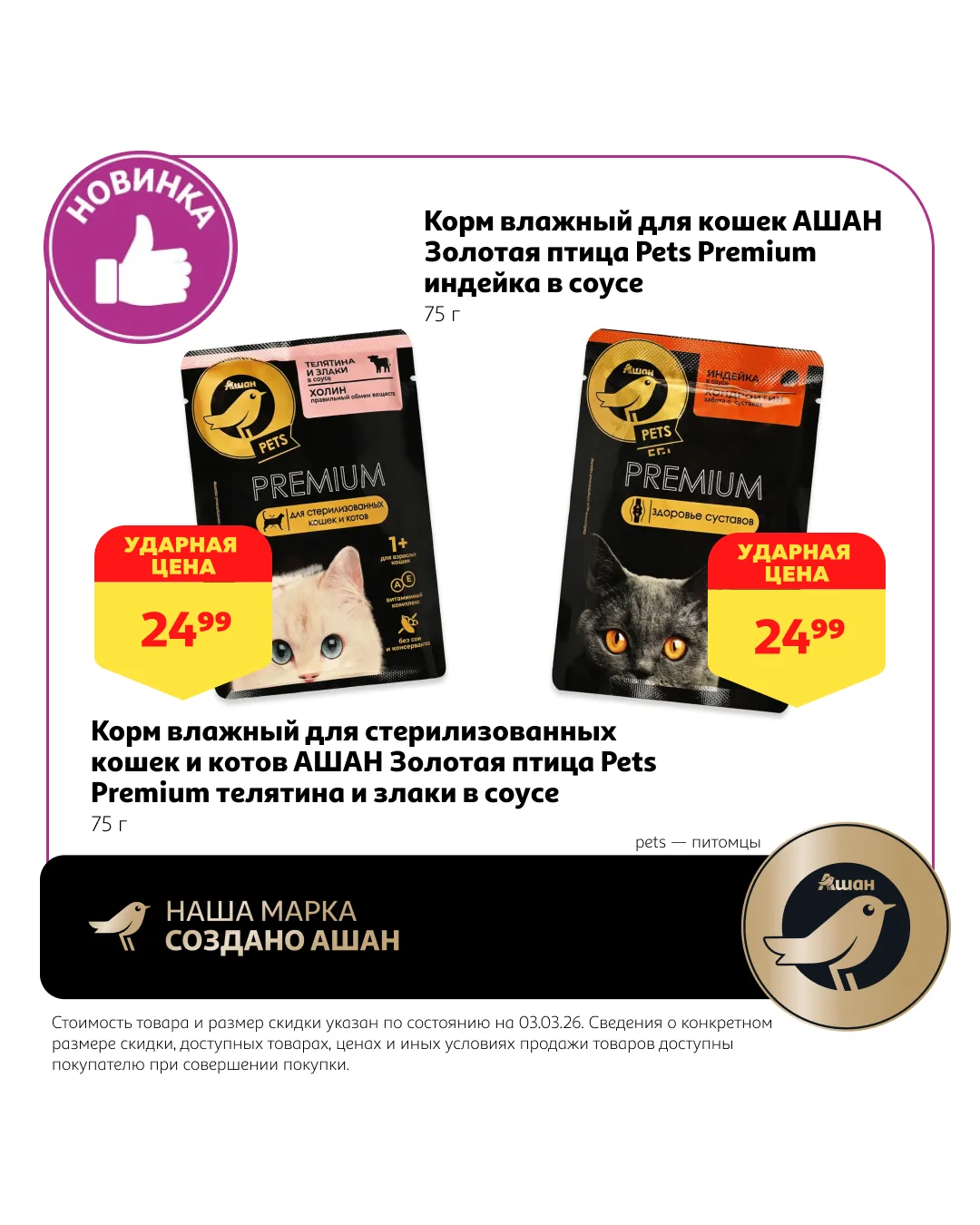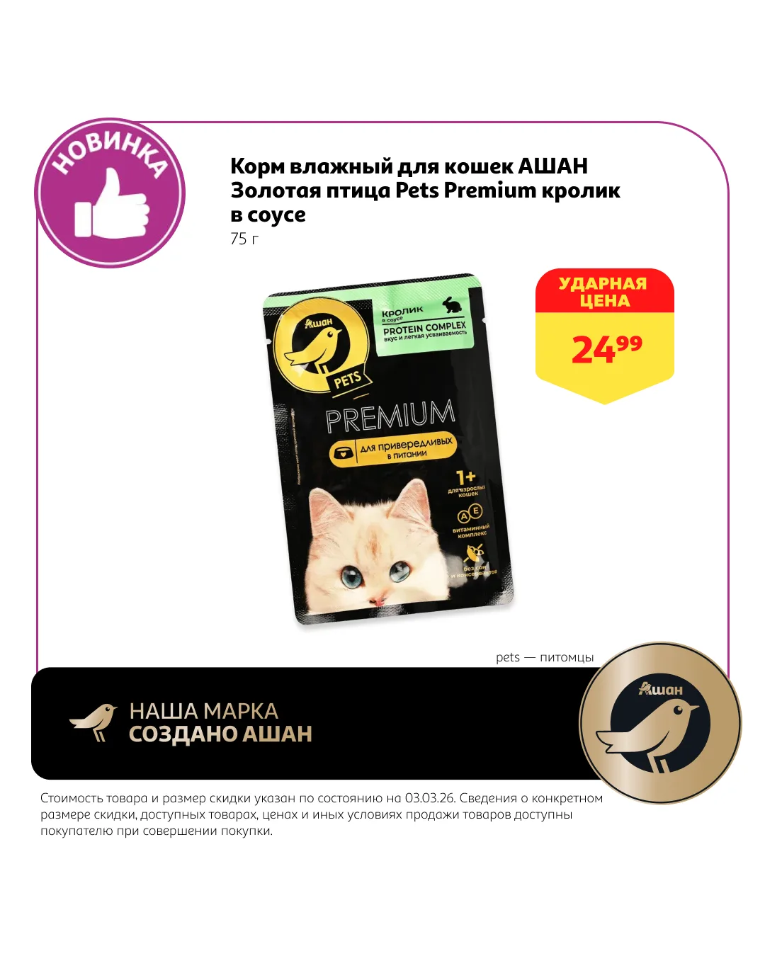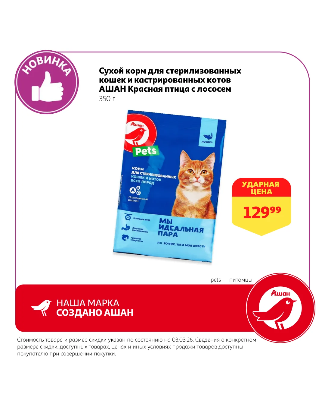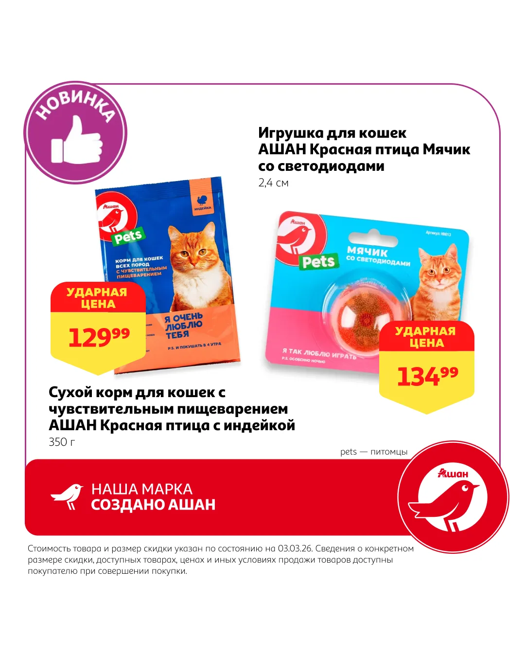 А ещё больше товаров для котов и кошек от Ашан Красная птица и Ашан Золотая птица ищите в наших магазинах, на сайте и в приложении «Мой Ашан».