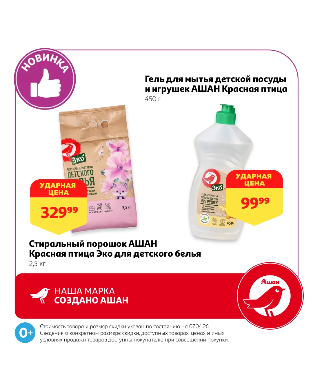 Покупайте средства для мытья посуды и забирайте губки от Ашан Красная птица за рубль! Базовый минимум для кухни — за максимально выгодную цену.