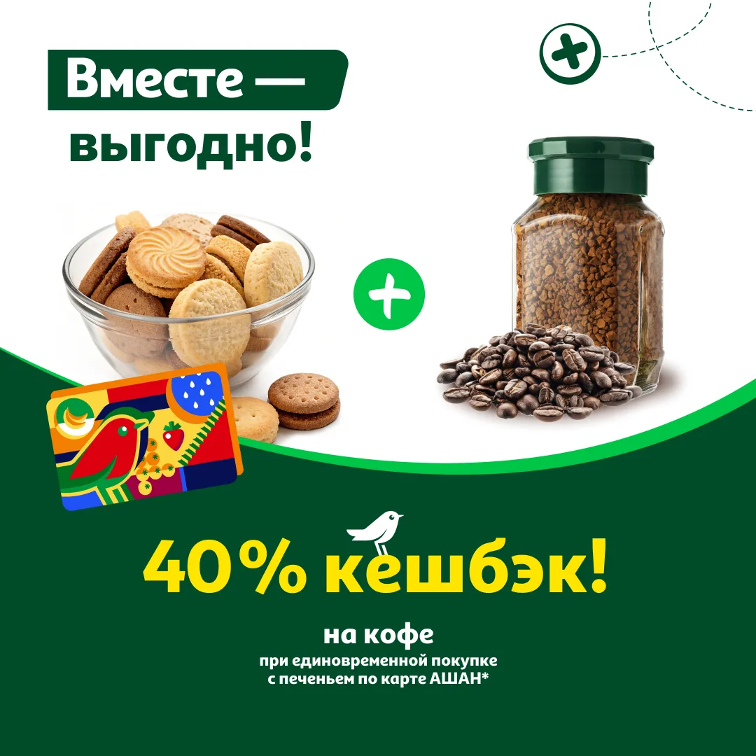 *Купон можно применить 1 раз в период акции при предъявлении зарегистрированной карты Ашан. Не действует на заказы на сайте и в мобильном приложении.