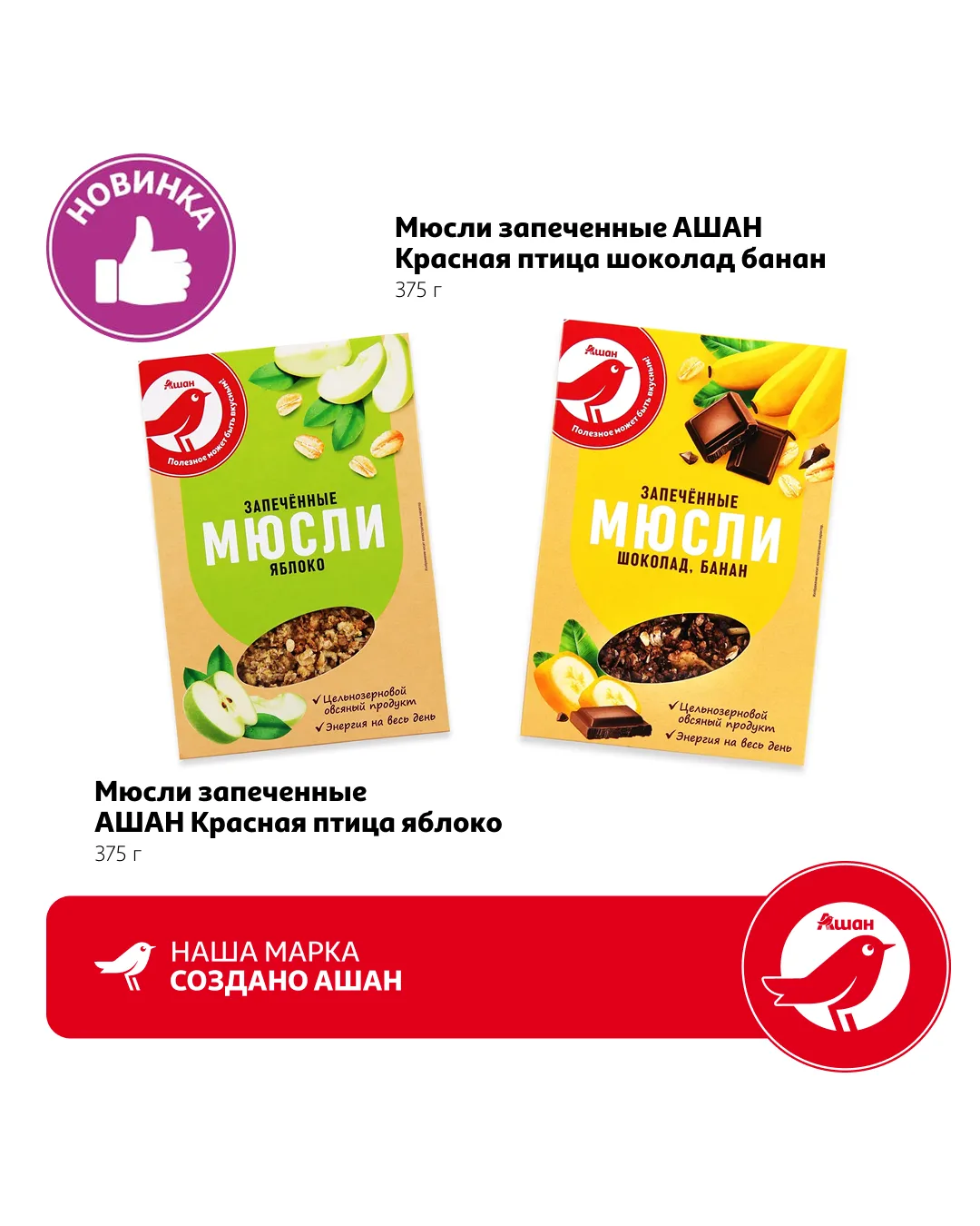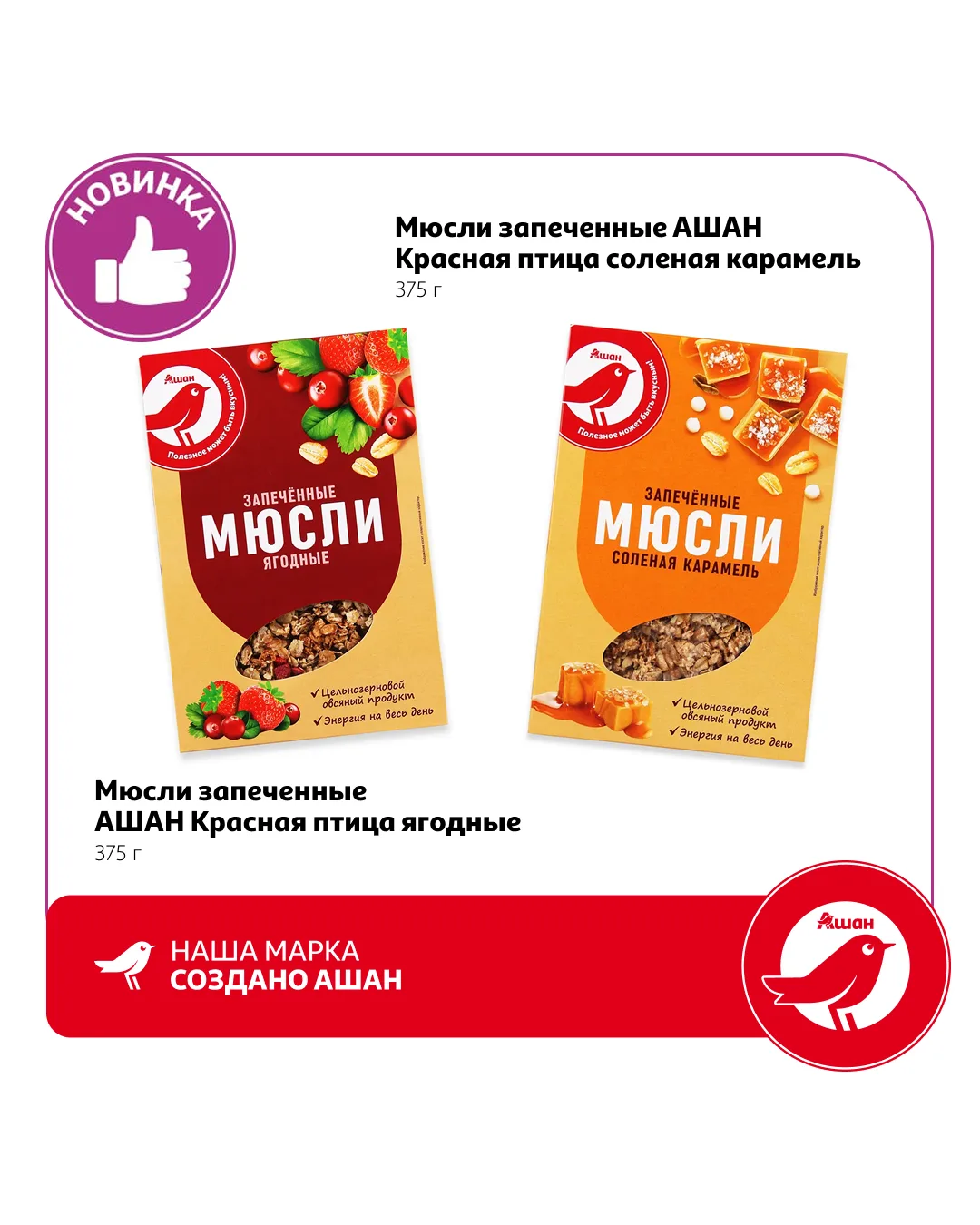 Потому что запечённые мюсли с натуральными ягодами и орехами от Ашан Красная птица — то, что нужно, для энергичного начала дня и отличного настроения.