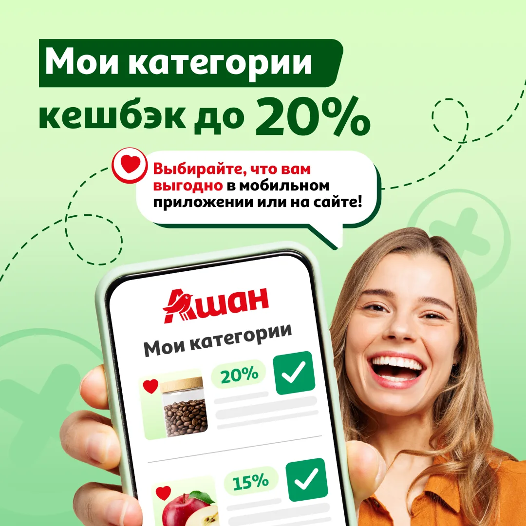 Ещё не выбрали? Тогда скорее переходите на auchan.ru или в приложение «Мой Ашан» и выбирайте 3 любимые категории товаров с кешбэком до 20%.