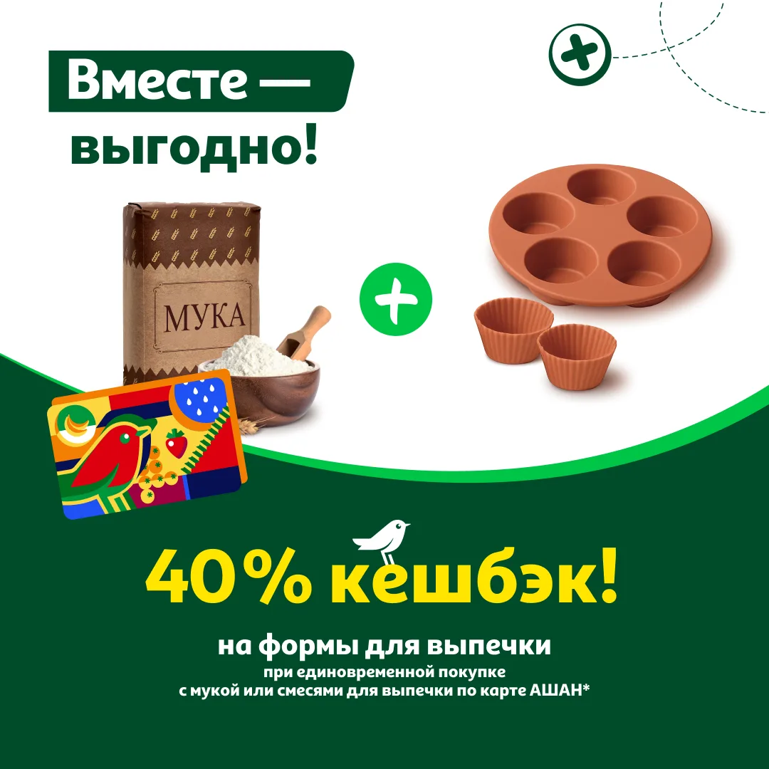 Получайте кешбэк 40% на формы для выпечки при единовременной покупке с мукой или смесями для выпечки.