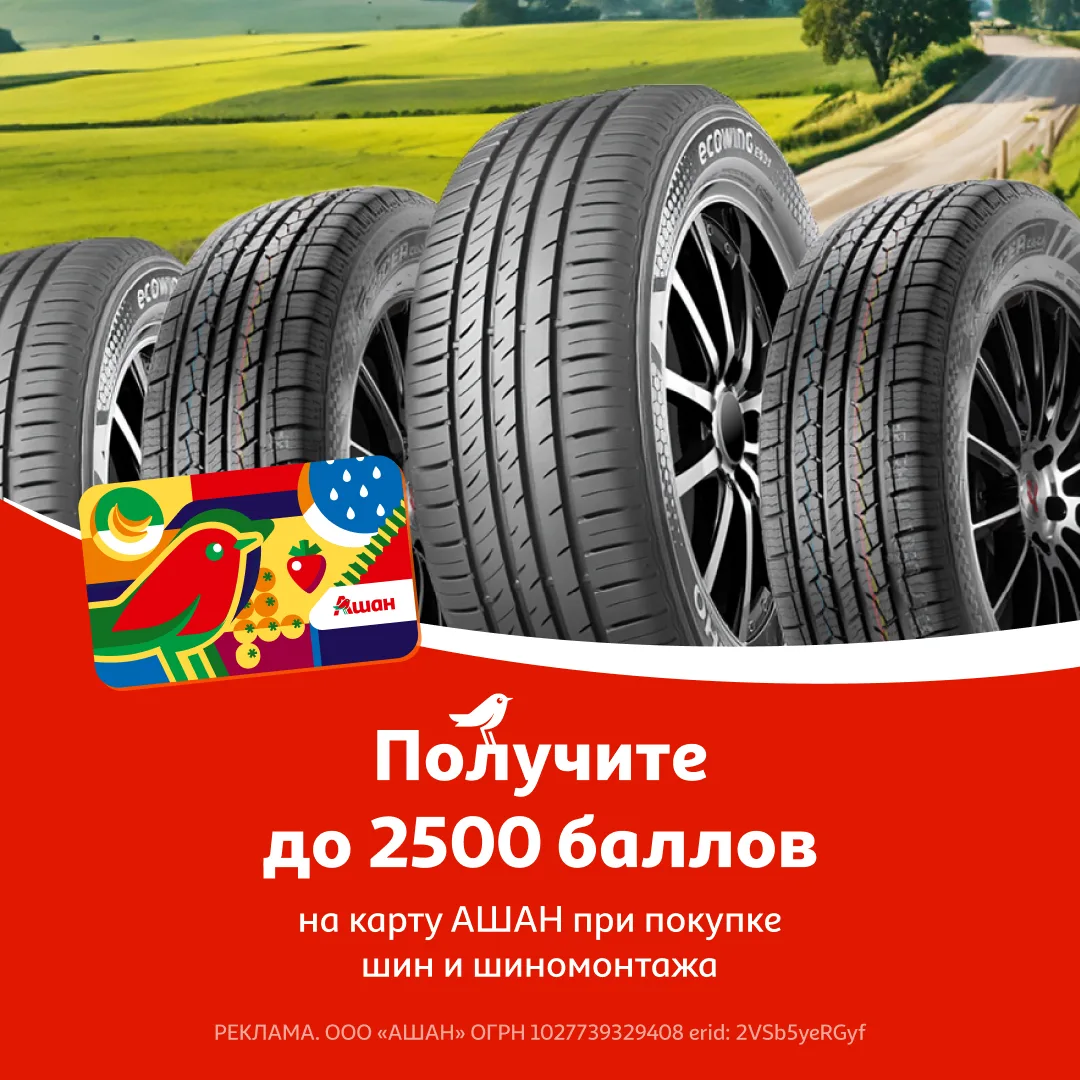 1. Покупайте любые 4 шины одного бренда в магазинах Ашан до 31 мая;