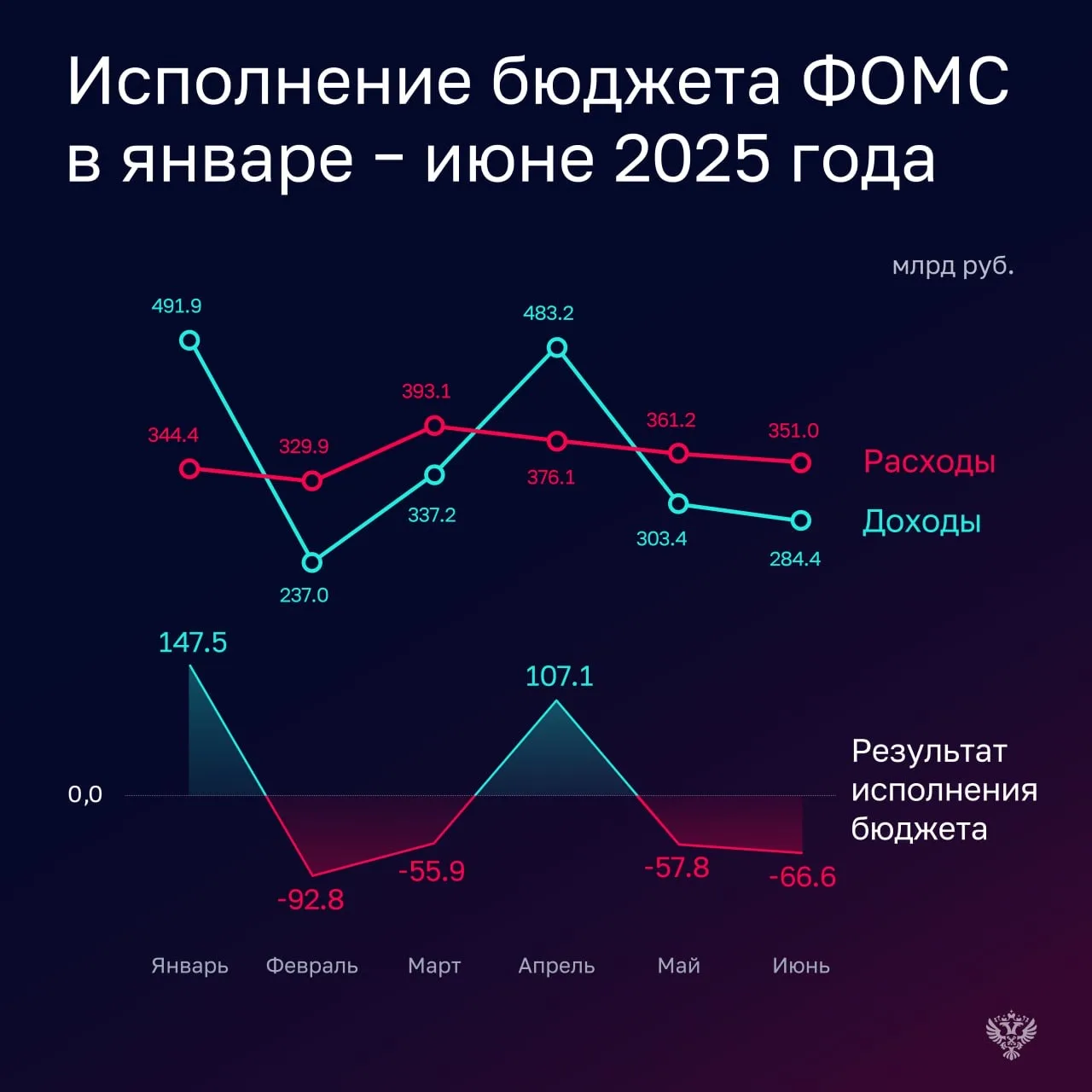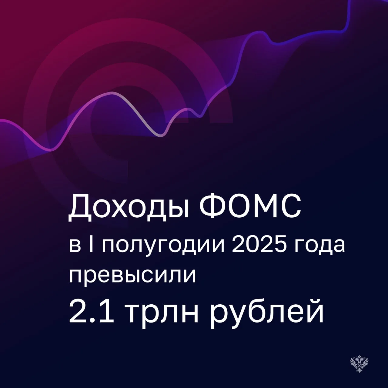 ⚪️ Доходы ФОМС исполнены в общей сумме 2,1 трлн рублей (49,3% прогнозируемого годового объема).