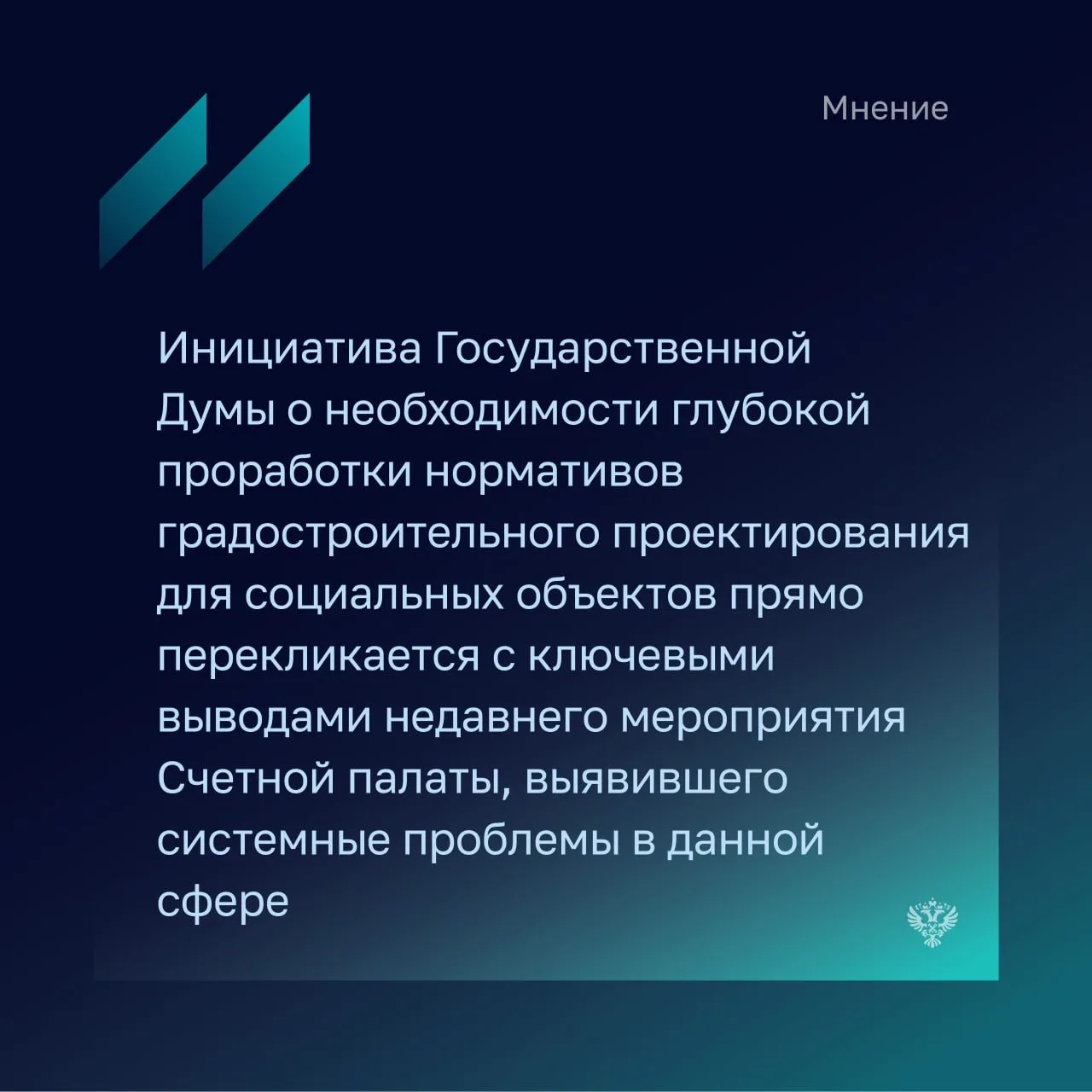 «Счетная палата провела анализ строительства социальных объектов и отметила ряд системных проблем в этой сфере. В первую очередь - недостаточное применение типовых проектов. Несмотря на то, что в правилах предоставления субсидий достаточно четко обозначено требование об использовании типовой документации, на практике мы видим, что доля объектов, построенных с ее применением, составляет всего 20-22%. При этом стоимость таких объектов дешевле на 20-25%. Конечно, для нас как для Счетной палаты снижение стоимости - один из самых главных показателей эффективности» – отметила аудитор Счетной палаты Наталья Трунова на сессии ВЭФ «Начать строить быстрее и больше на Дальнем Востоке. Эксперимент в строительстве».