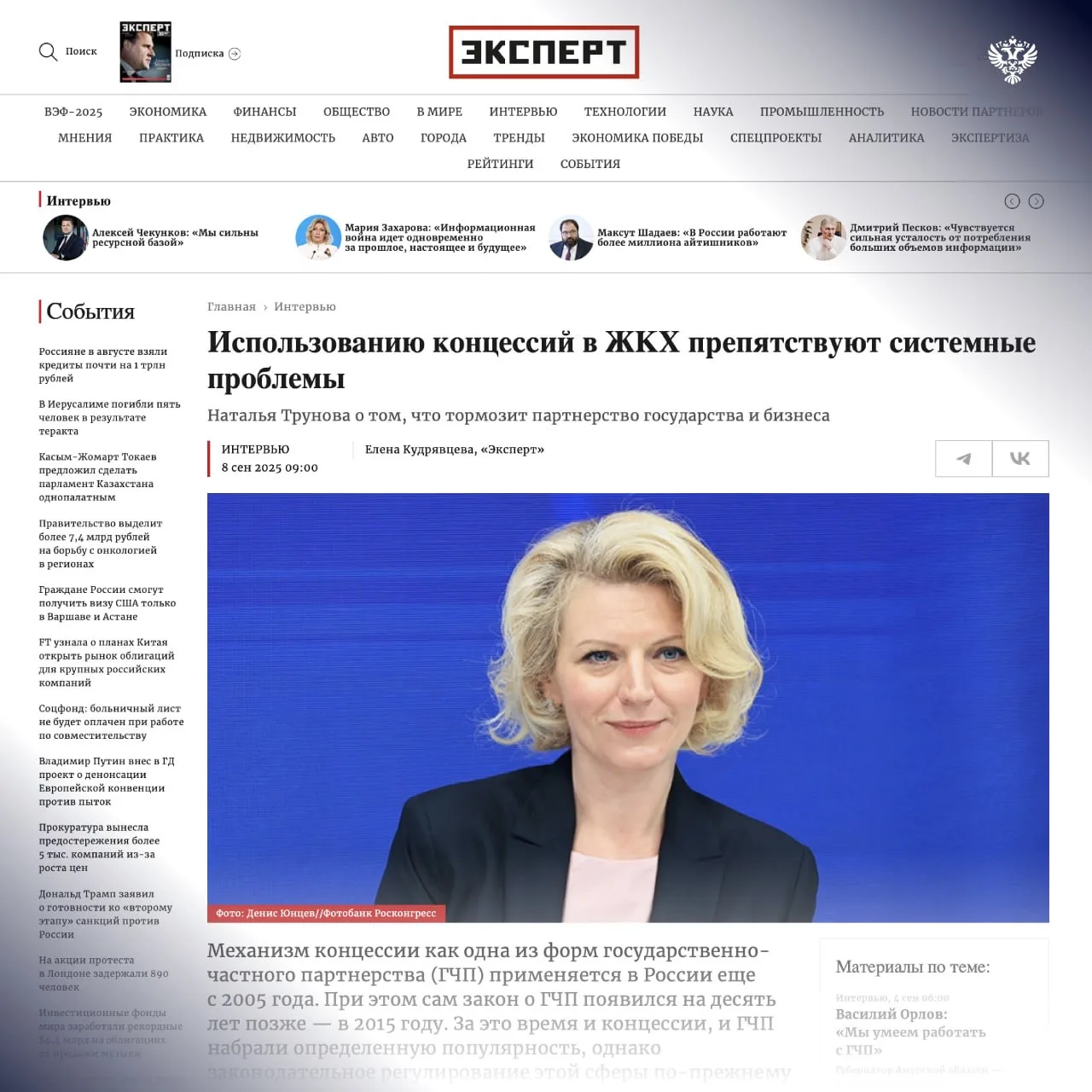 На вопрос, насколько популярны сейчас концессии в ЖКХ, Наталья Трунова ответила: