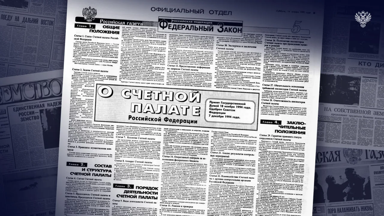 14 января 1995 года в Российской газете был опубликован первый закон о Счетной палате, определивший её как высший и независимый орган государственного финансового контроля.