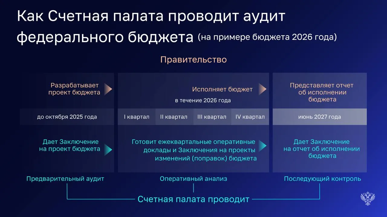 Федеральный бюджет — это финансовый план страны на три года вперед, а его аудит – одна из ключевых задач Счетной палаты. Если воспользоваться простой, но понятной метафорой, то бюджет на очередной год легко представить как новый автомобильный маршрут, и сейчас наша задача — проверить его до начала поездки.