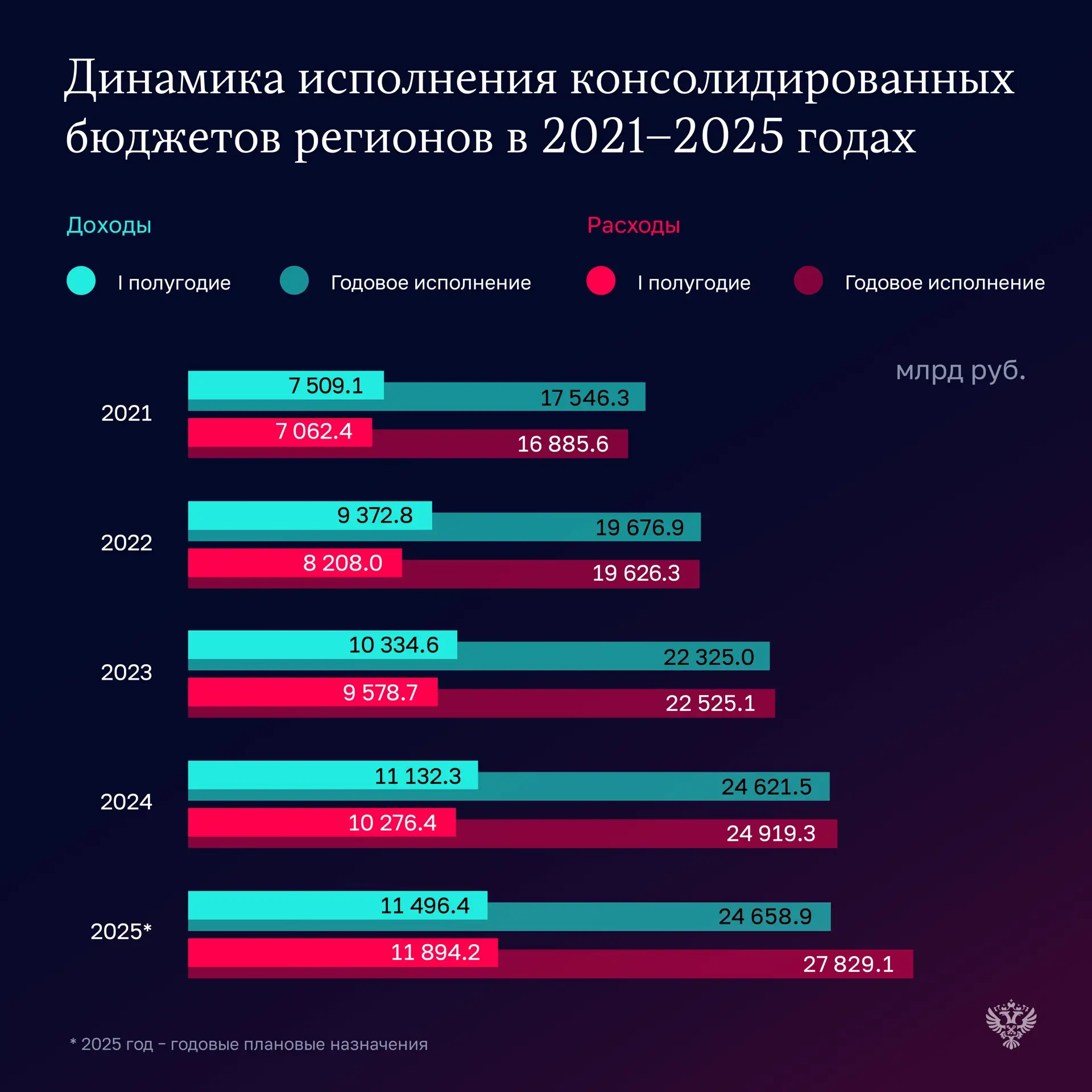 ➡️ Доходы консолидированных бюджетов субъектов, по сравнению с аналогичным периодом 2024 года, выросли на 3,3 %