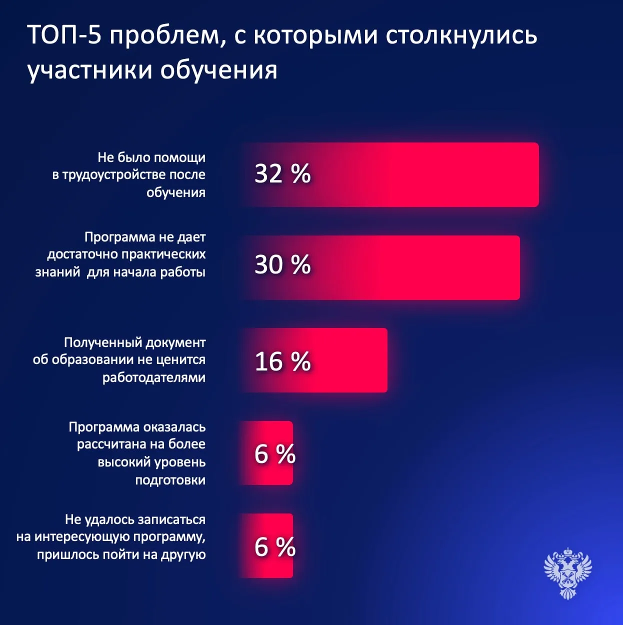 Ключевые проблемы заключаются в отсутствии четких критериев оценки эффективности, несоответствии направлений обучения реальным потребностям рынка труда, а также недостаточной мотивации некоторых участников к достижению результатов.