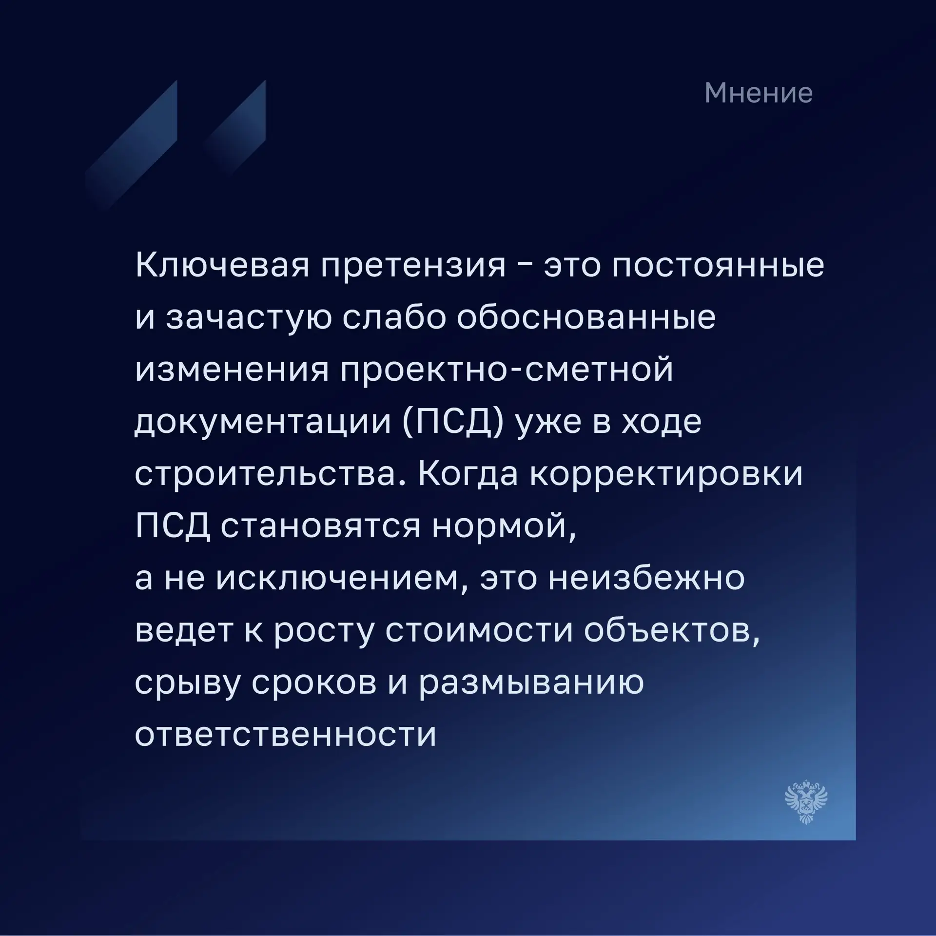 ➡️ Задержку сроков из-за корректировки проектной документации, что приводит к значительному увеличению цен контрактов