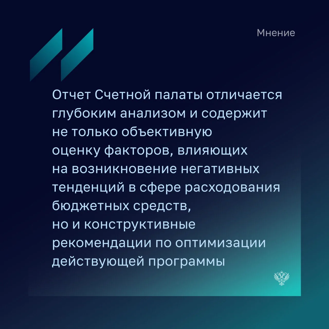 Я рад, что у нас со Счетной палатой с первого шага, даже на уровне замысла этого проекта, сложилось конструктивное сотрудничество и взаимодействие. Важно, чтобы положительный опыт, который выявил этот эксперимент, распространился на все регионы, чтобы это сработало на главную цель – достижение национальных целей развития страны».