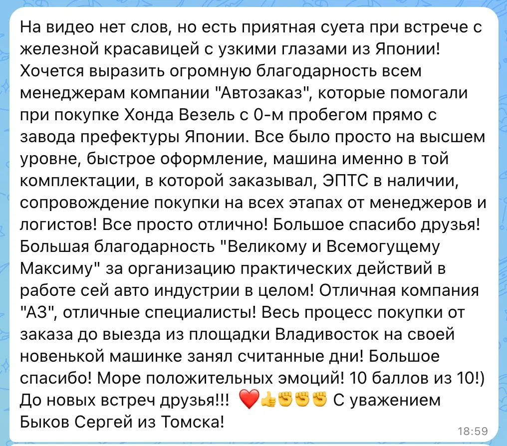 HONDA VEZEL - едет Алексею в город Каменск-Уральский!