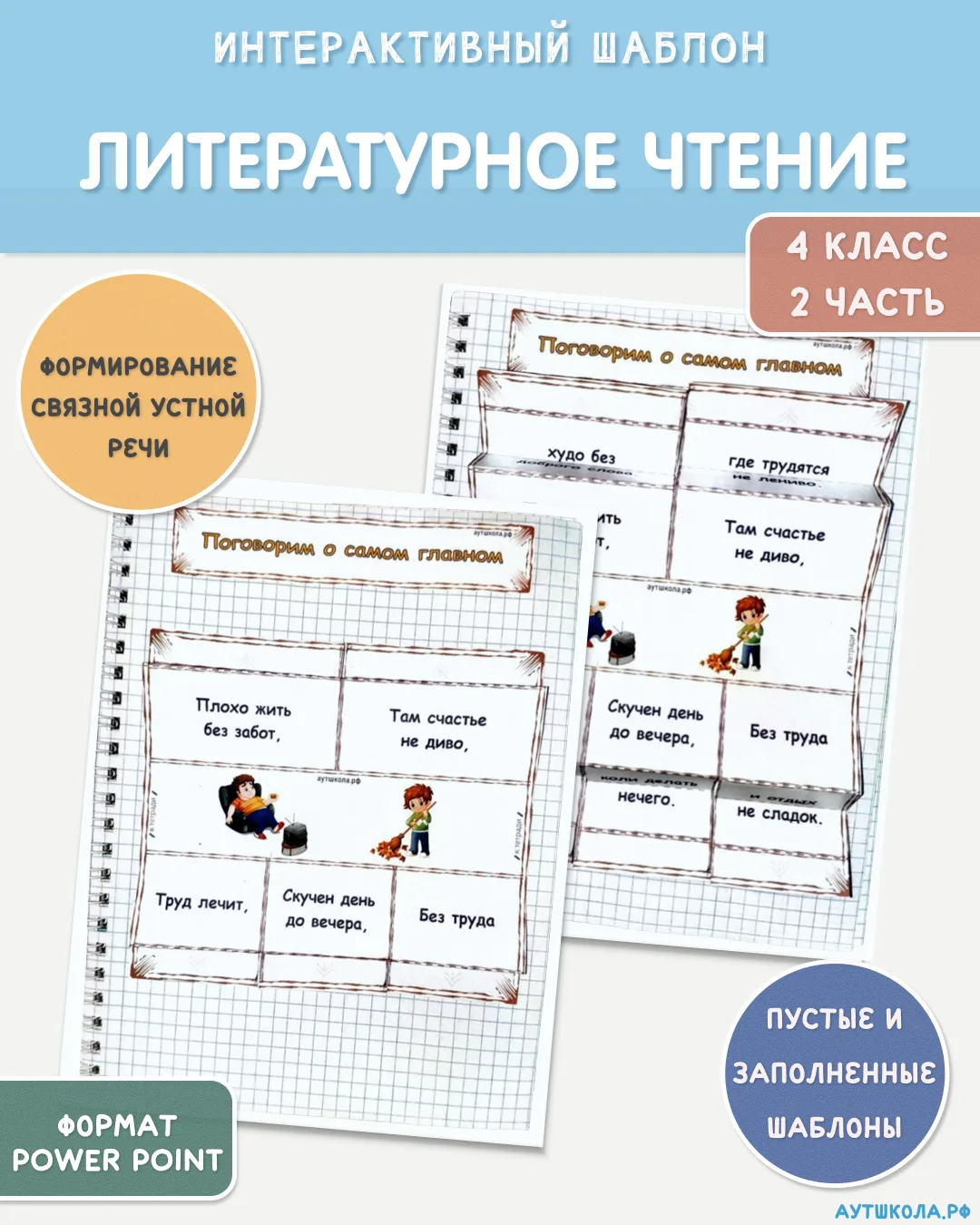 ☃ Бесплатный шаблон для интерактивной тетради по литературному чтению (4 класс 2 часть)