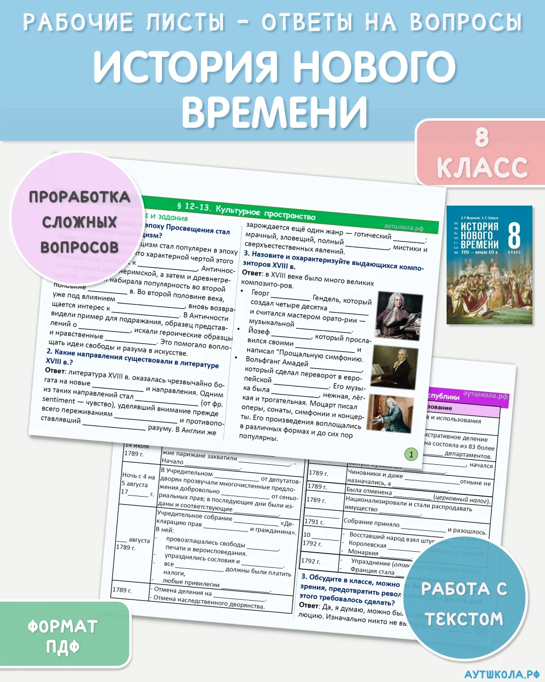 Закончена работа по разработке рабочих листов с ответами на вопросы по учебнику «История. Всеобщая история. История Нового времени. XVIII — начало XIX вв.» (8 класс, Медин-кий, 2025) по параграфам. В ПЛАТНУЮ ПАПКУ добавлен итоговый вариант рабочих листов