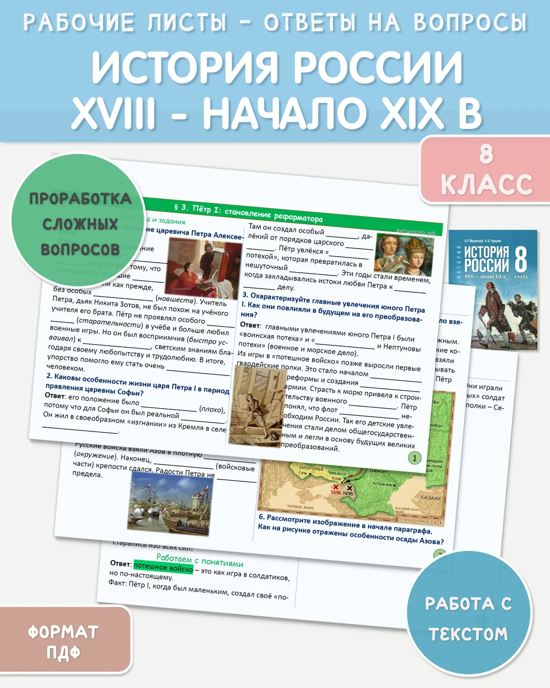 Мы делаем рабочие листы - ответы на вопросы по истории России, 8 класс - к каждому параграфу учебника